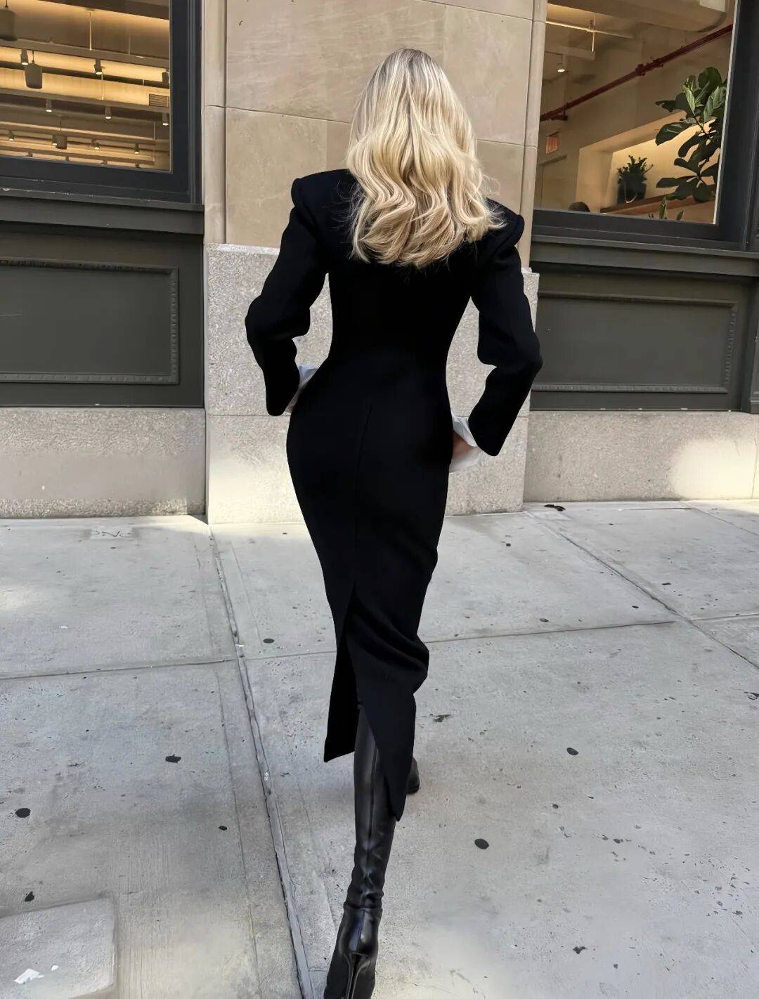“All Black”是永远不会出错的搭配公式。用黑色靴子搭配同色系的打底裤或打底袜,视觉上能无限延长腿部线条,极致显瘦,同时高级感满满。