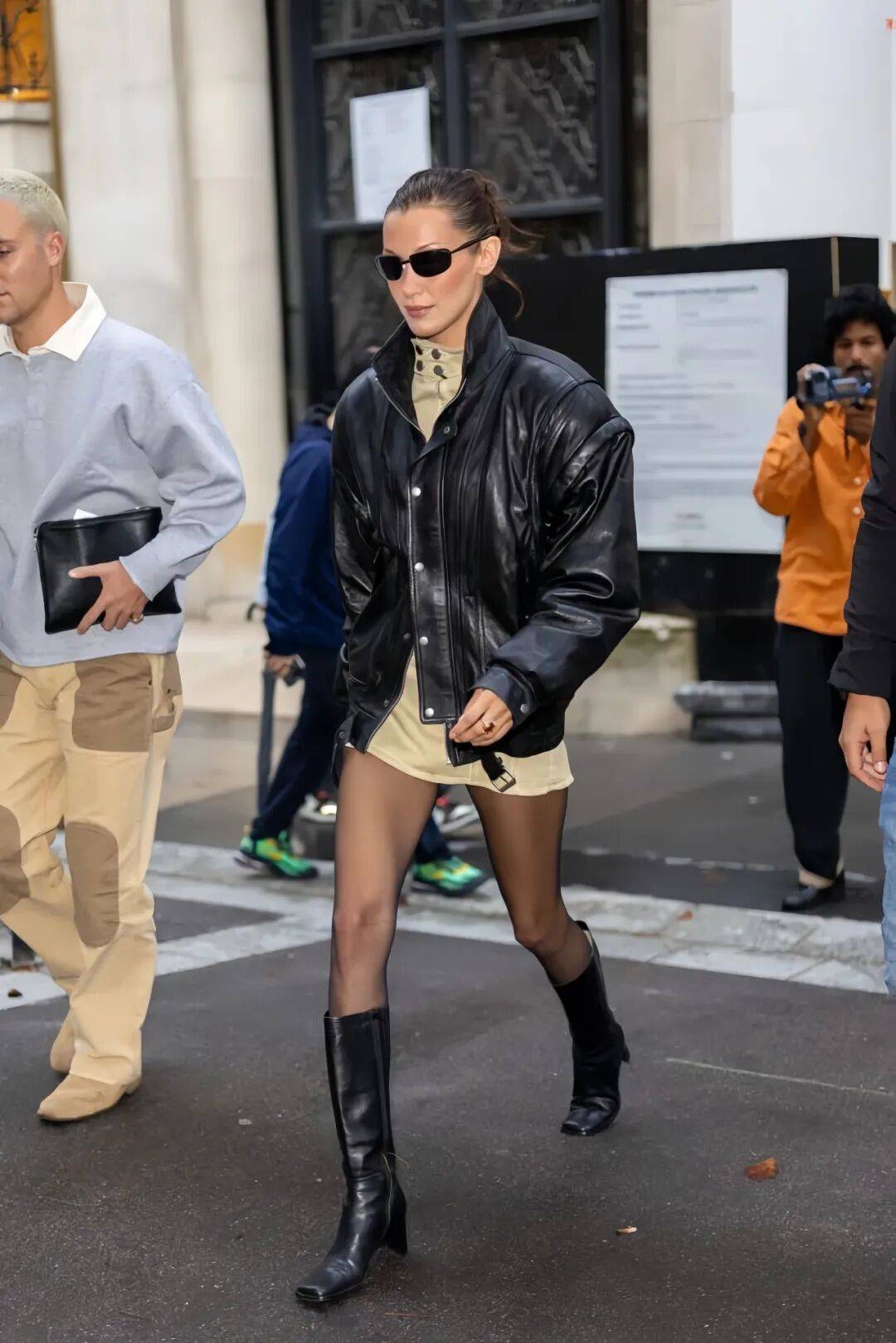 往年我们习惯搭配紧身牛仔裤,像 Bella 这种紧身裤配宽口靴的穿法,当然什么时候都不过时。▼