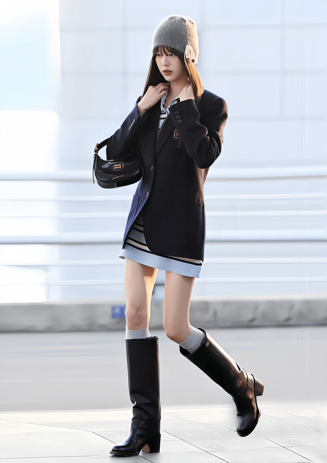 郑采妍等韩国女团成员的机场照就很喜欢这样搭。▼
