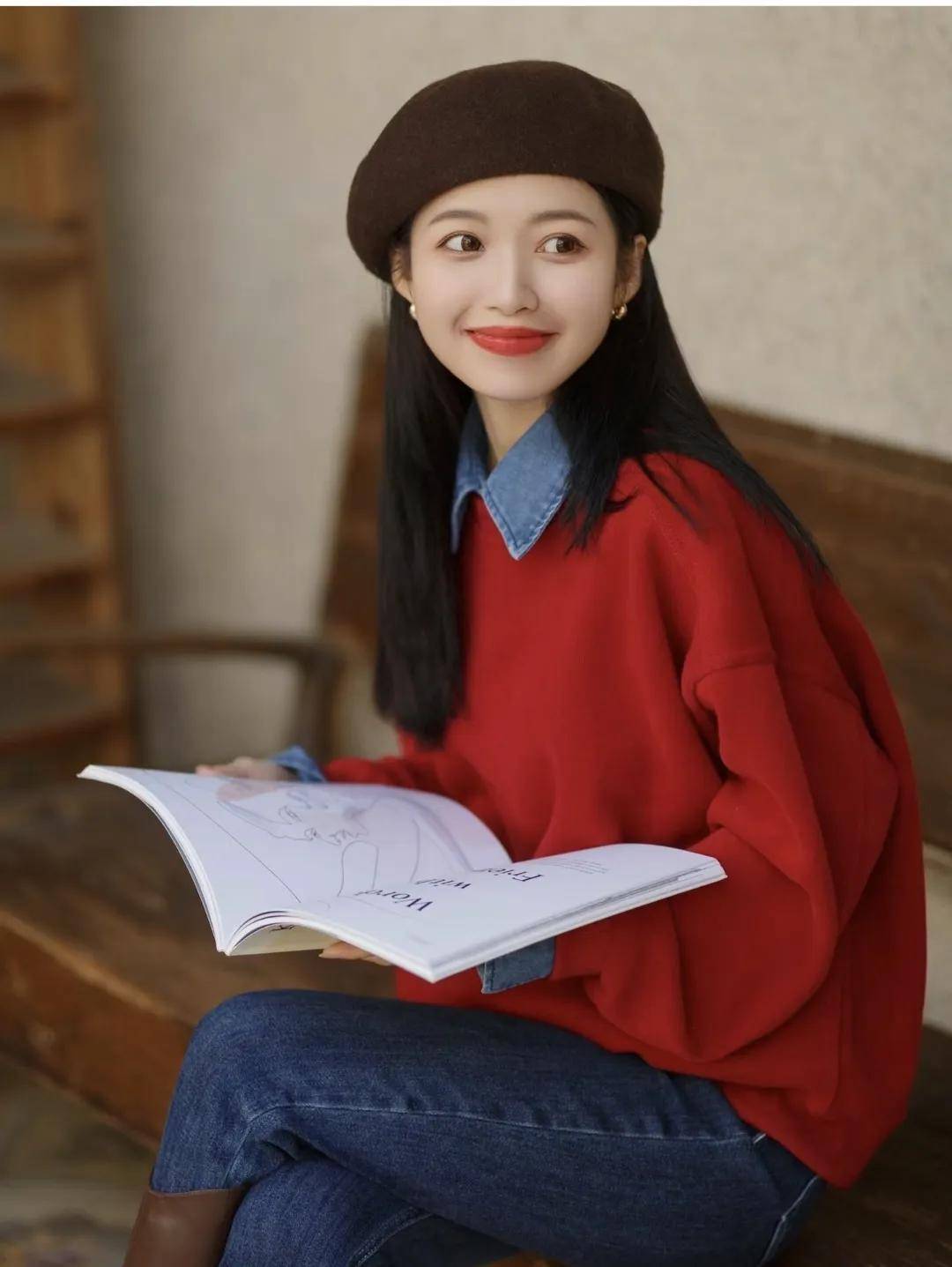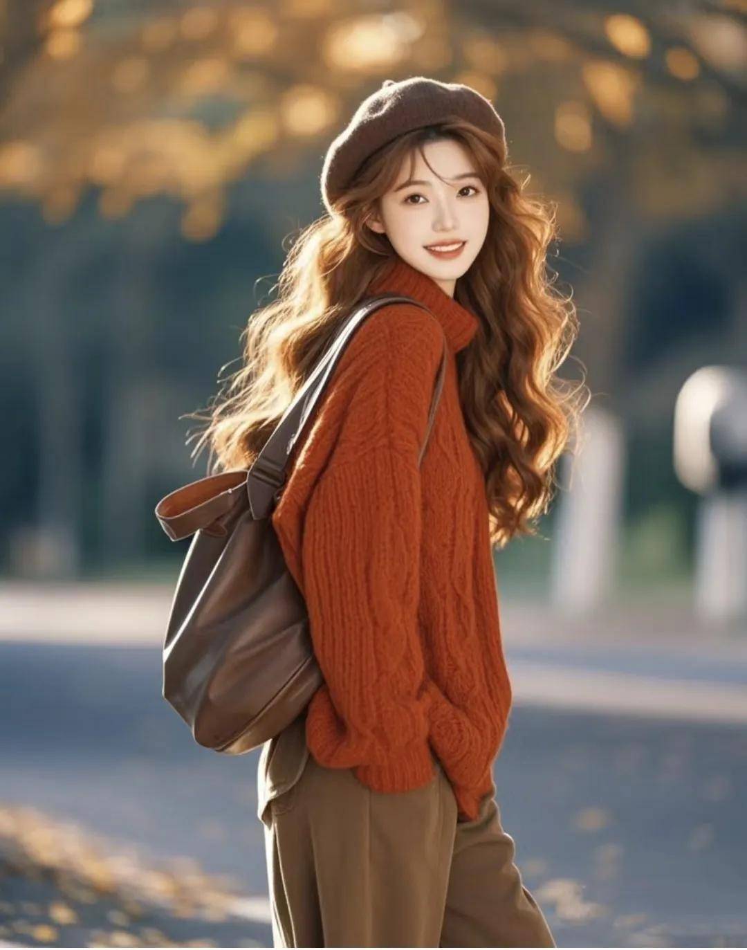 棕色与正红的相遇,宛如秋日枫叶落在热可可杯沿的浪漫画面。遵循“外红内棕”或“红主棕辅”法则,让棕色作为内衬或点缀悄然登场,既能化解红色的攻击性,又添几分复古腔调。内搭棕色针织衫搭配蓝色牛仔裤,浓郁与清爽对冲,为造型注入街头活力,破解红棕配色的厚重感。若将内搭换成红色打底衫,如同冬日里一团行走的火焰,充满存在感与戏剧张力,蓝色牛仔裤则是将这份热烈完美“落地”的关键。