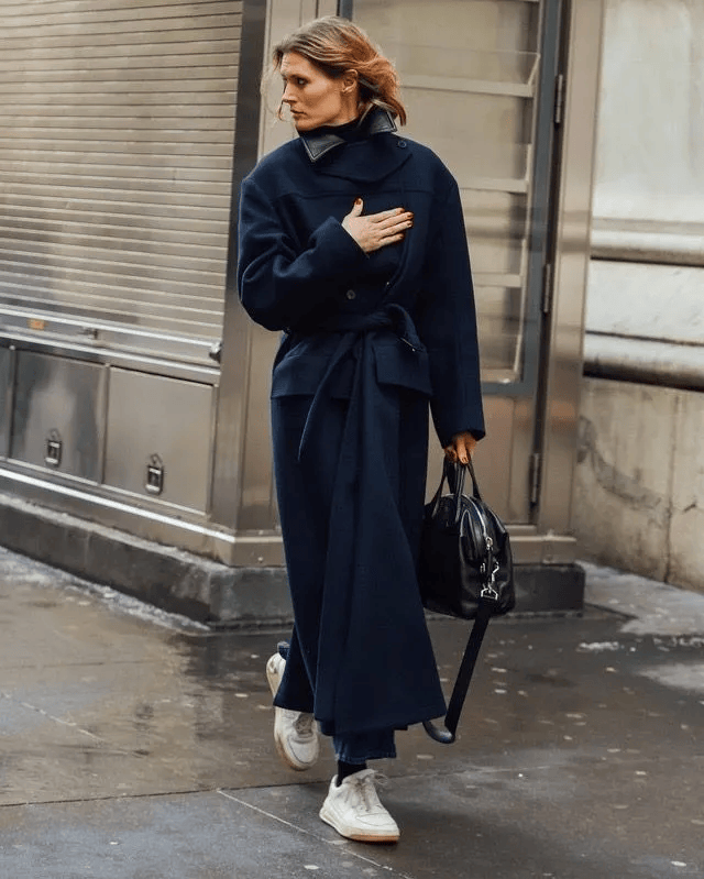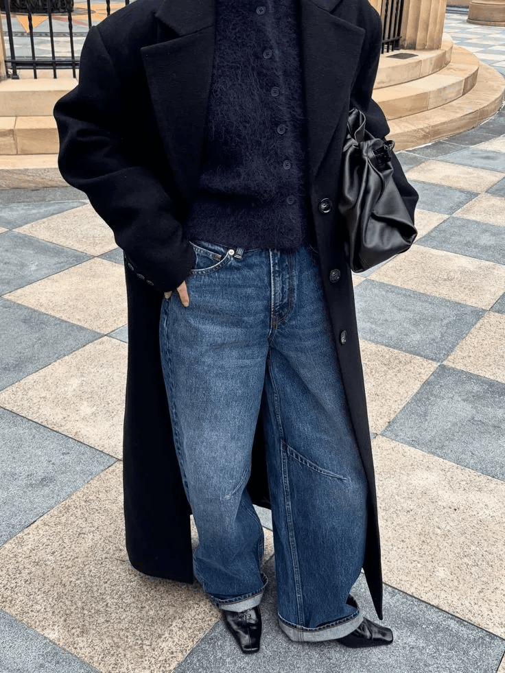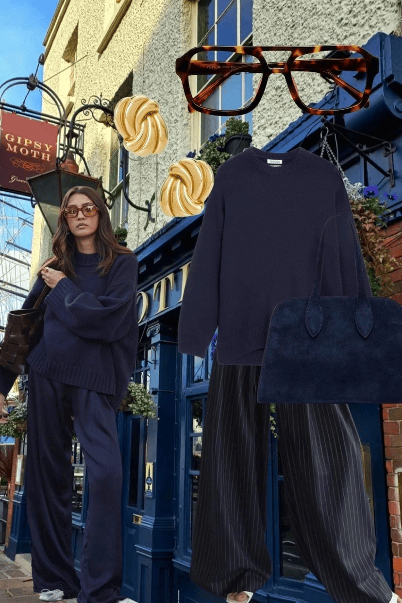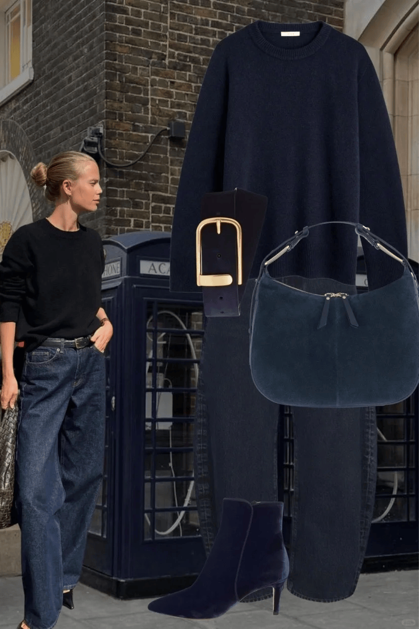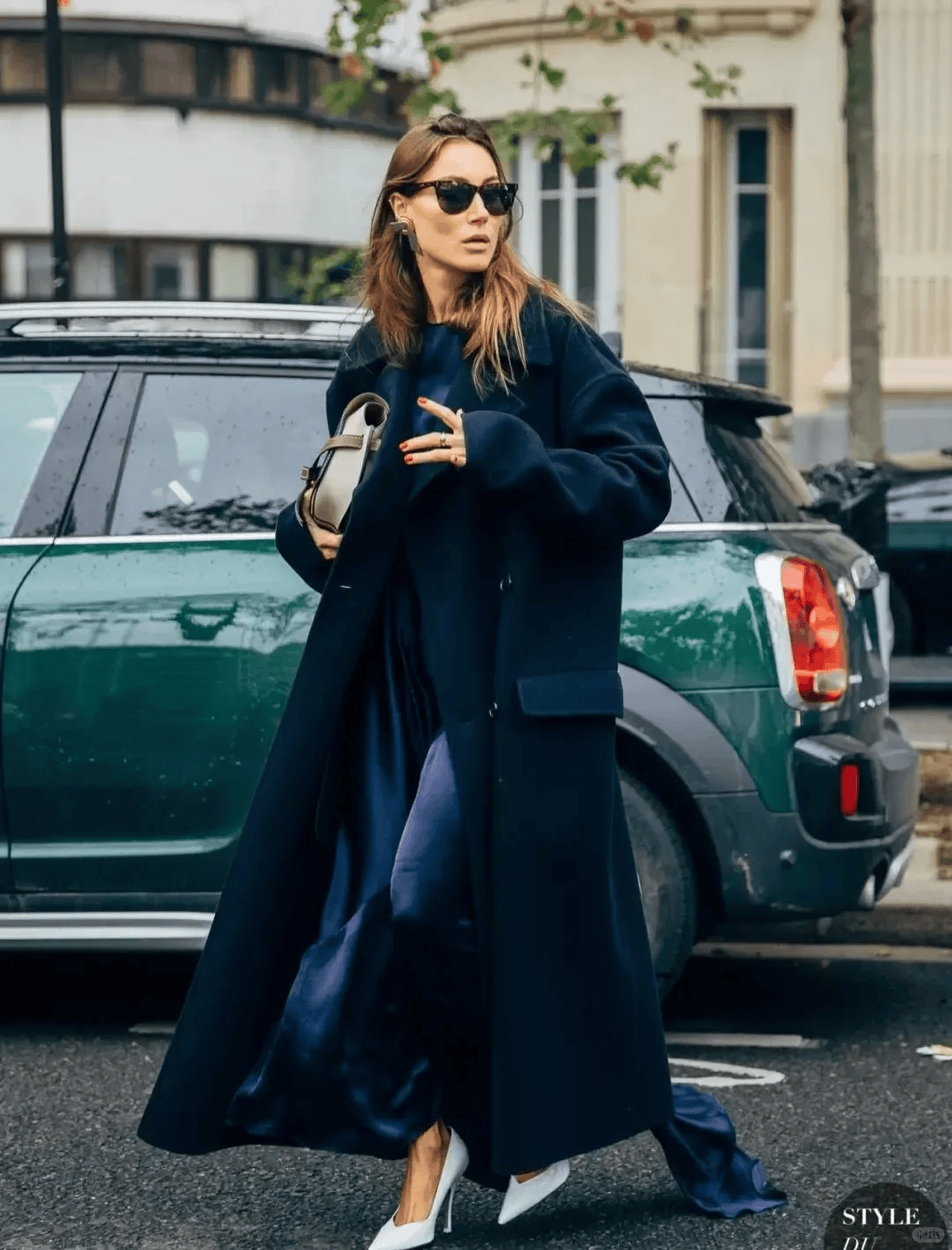 点睛理念:藏蓝的精髓在于“不喧哗自有声”。选择垂感面料(真丝、羊绒)、注重剪裁廓形,无需繁复装饰,便能沉淀出冬日穿搭的贵族风骨。