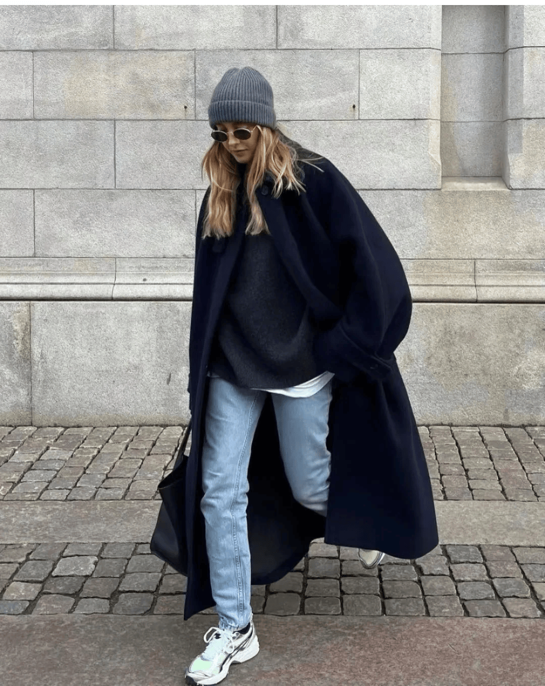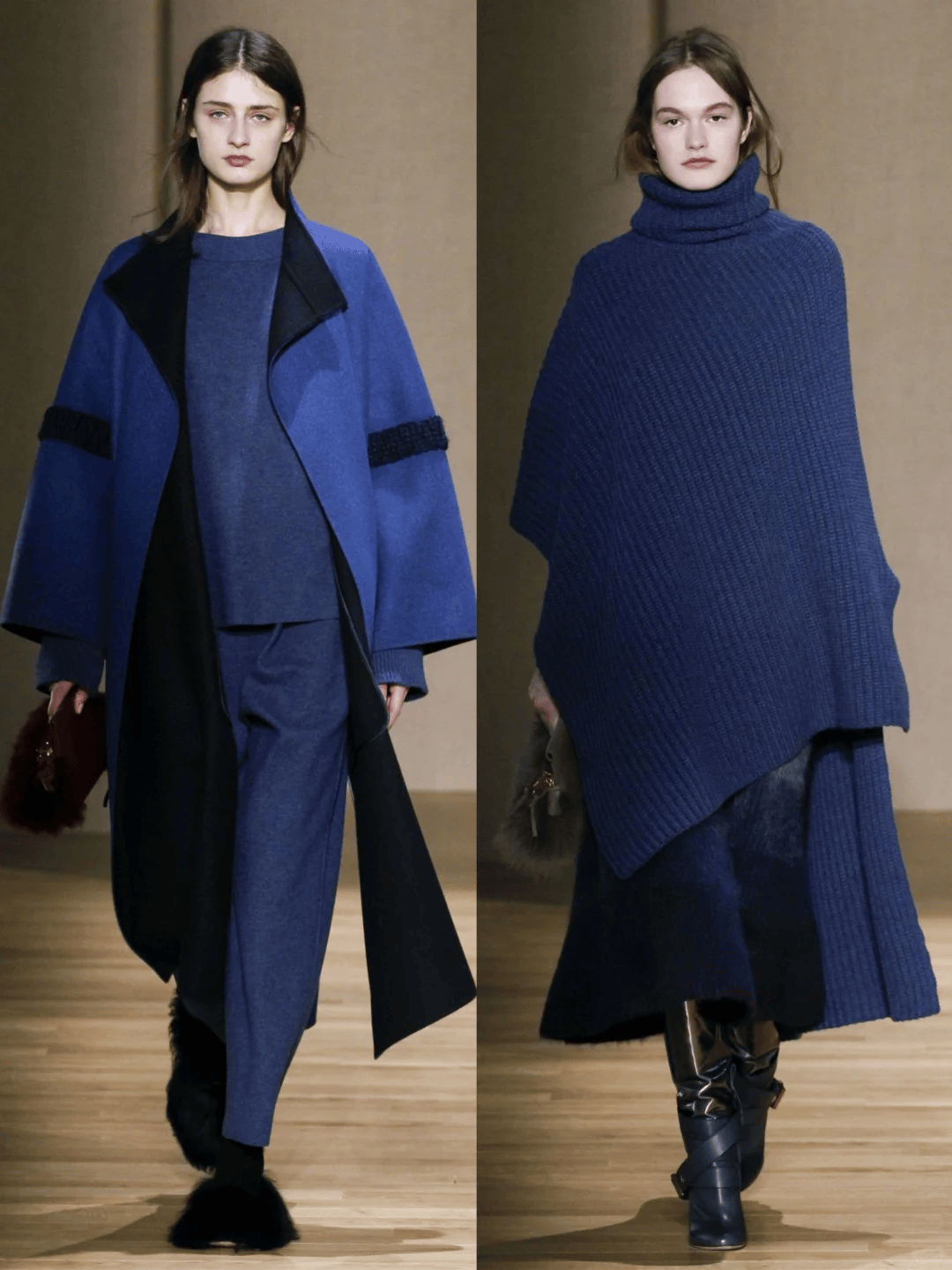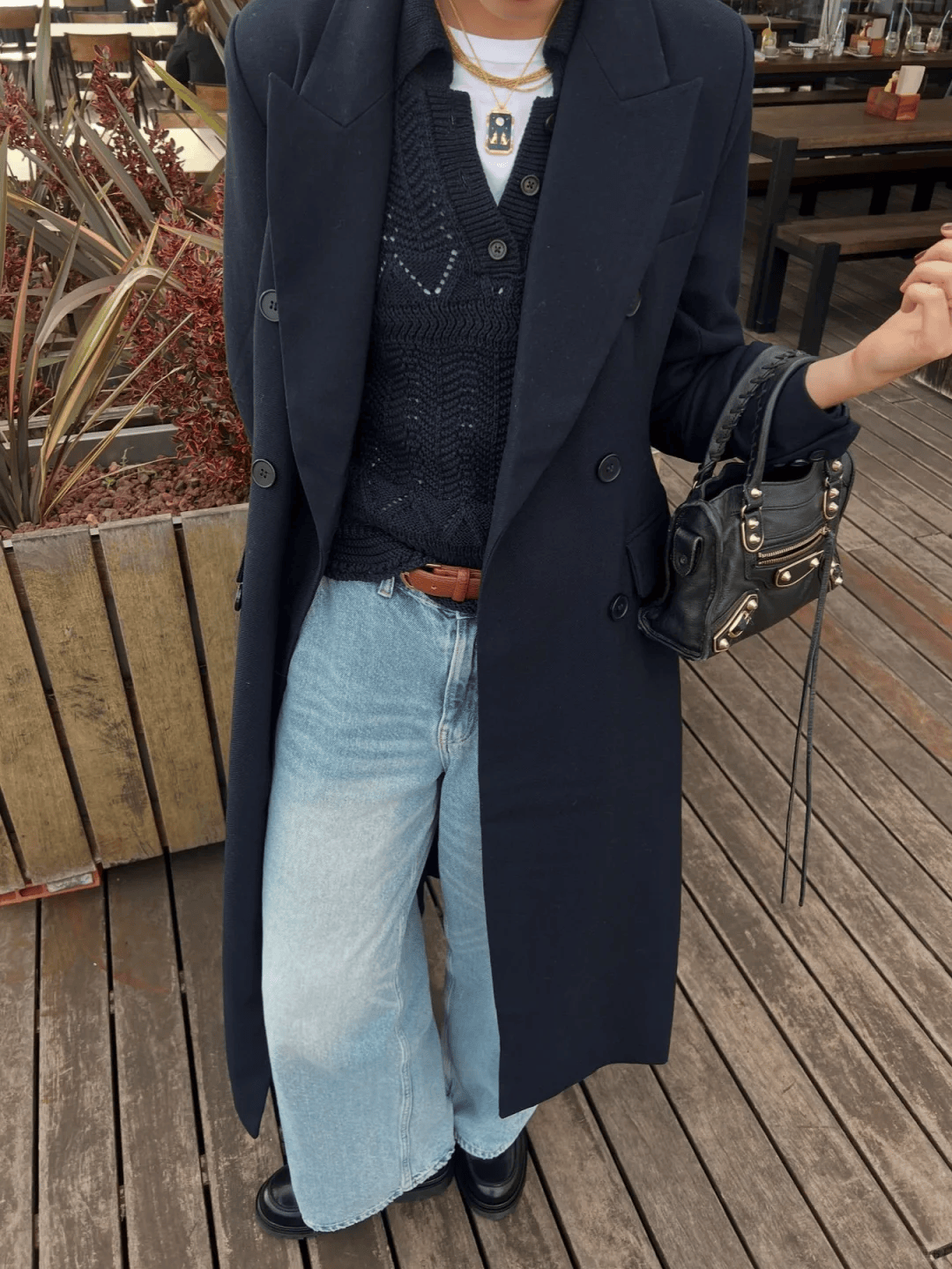 点睛理念:藏蓝的精髓在于“不喧哗自有声”。选择垂感面料(真丝、羊绒)、注重剪裁廓形,无需繁复装饰,便能沉淀出冬日穿搭的贵族风骨。