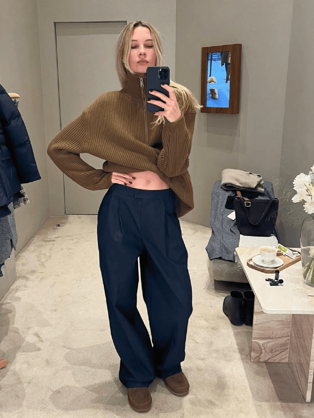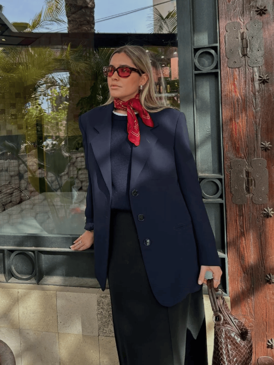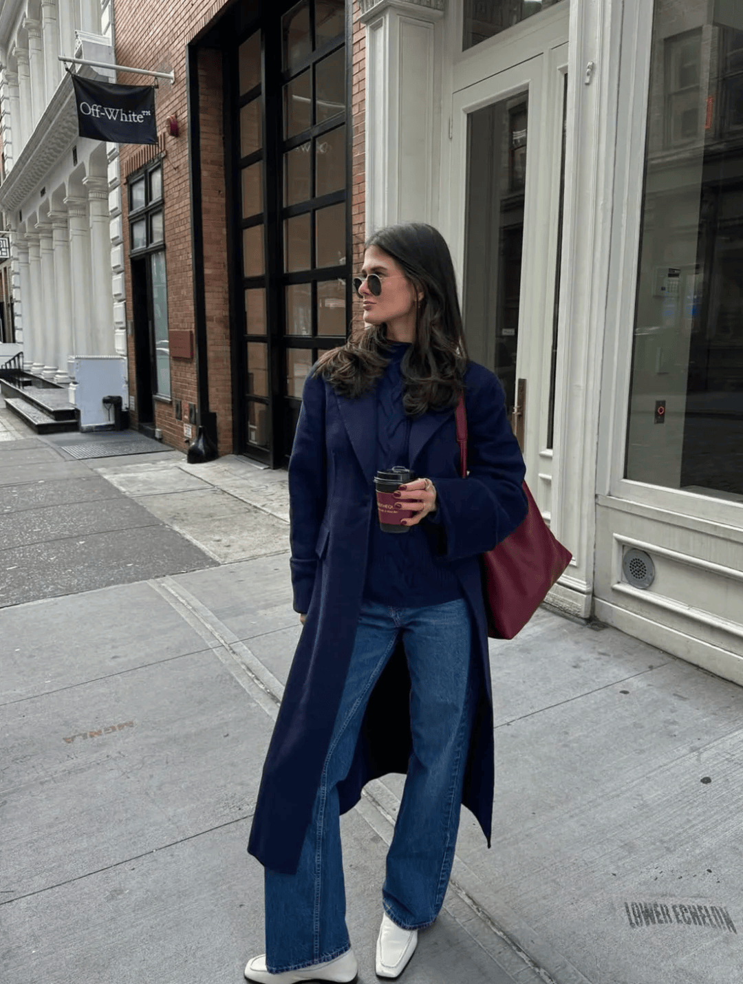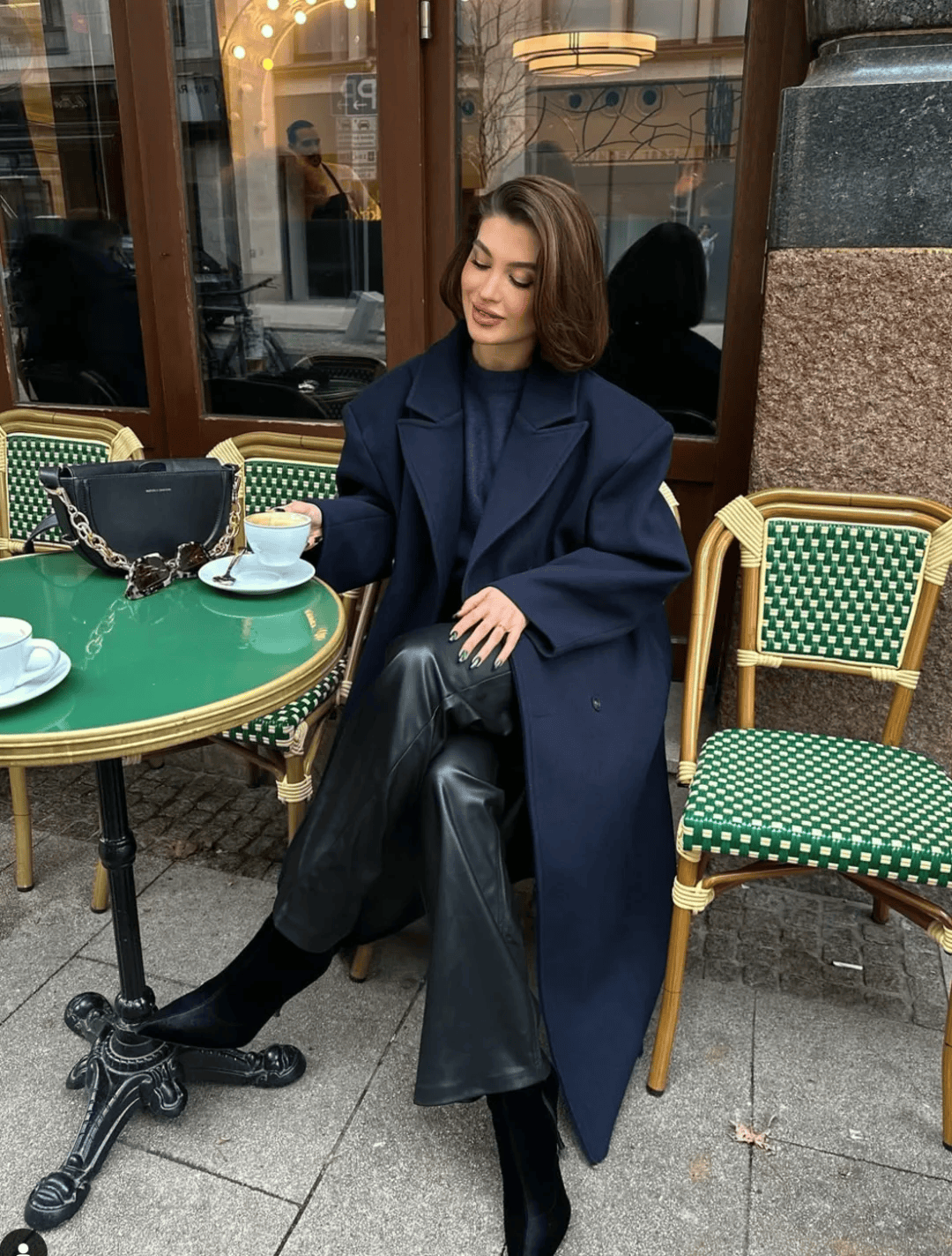 点睛理念:藏蓝的精髓在于“不喧哗自有声”。选择垂感面料(真丝、羊绒)、注重剪裁廓形,无需繁复装饰,便能沉淀出冬日穿搭的贵族风骨。