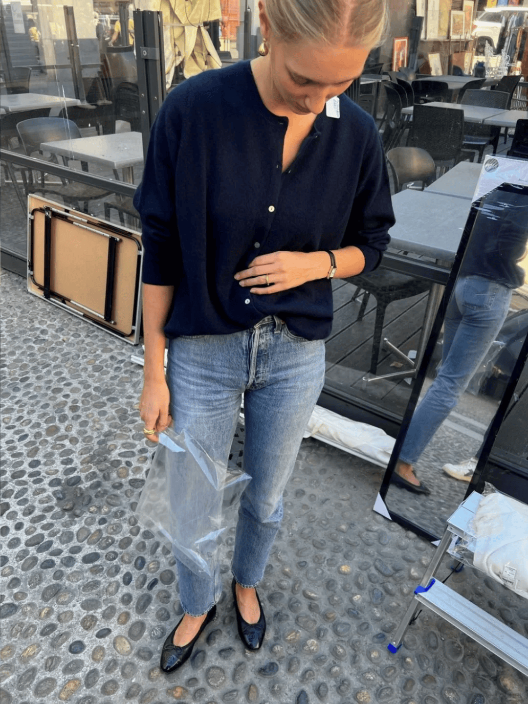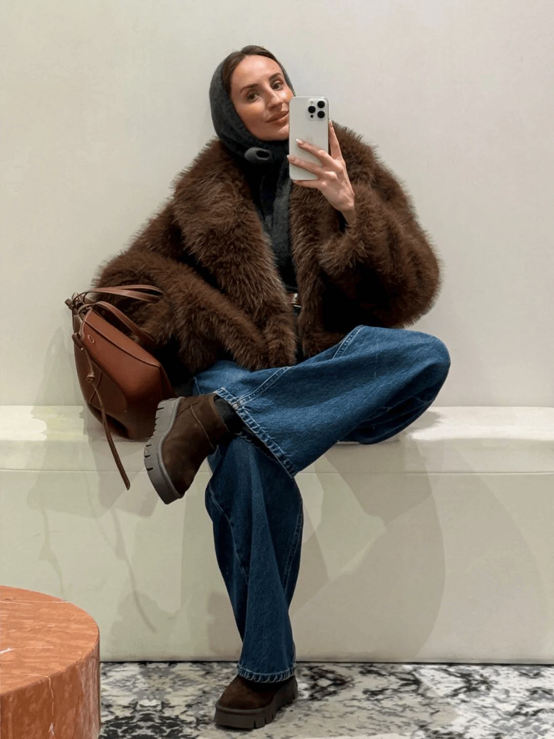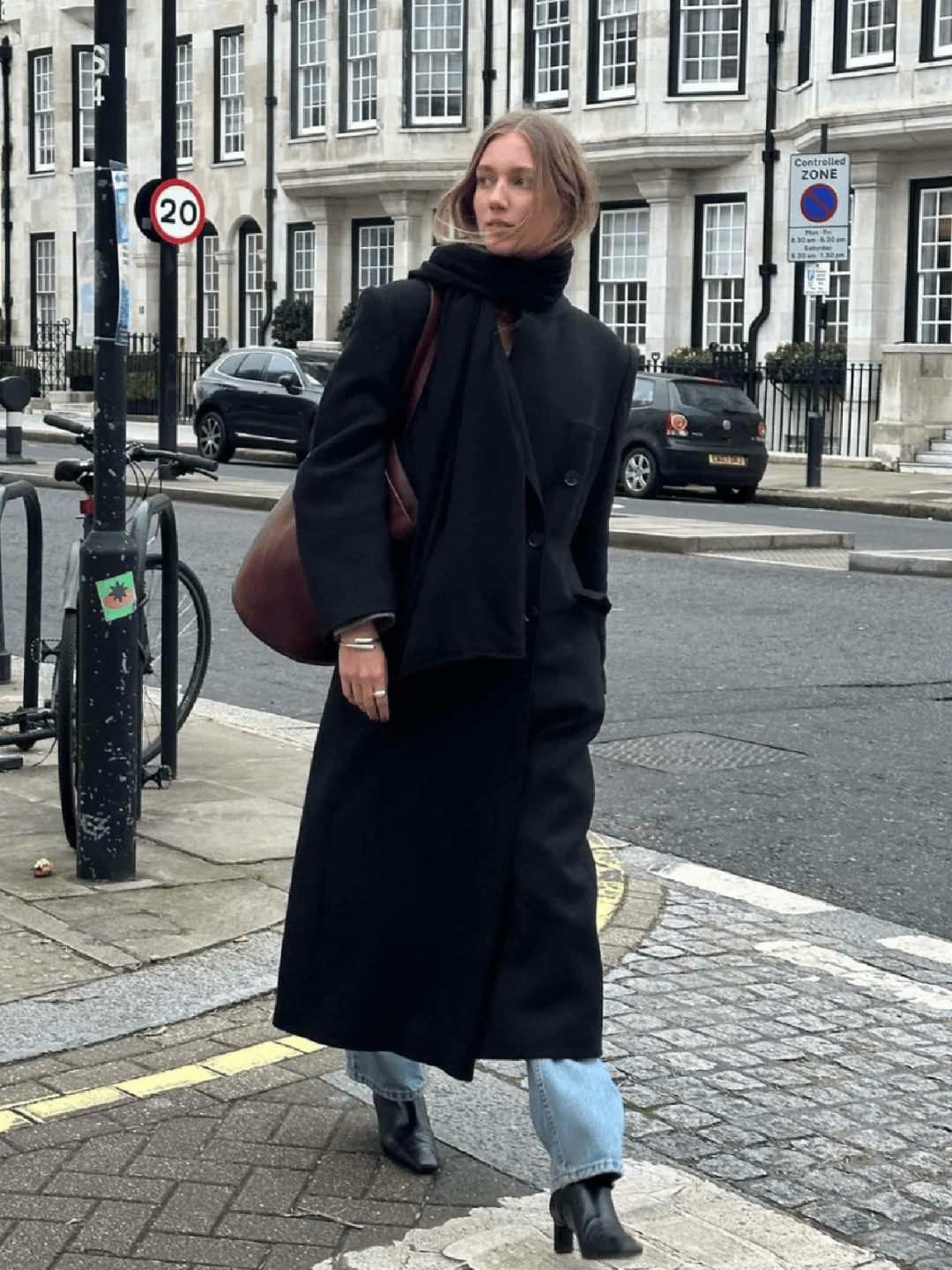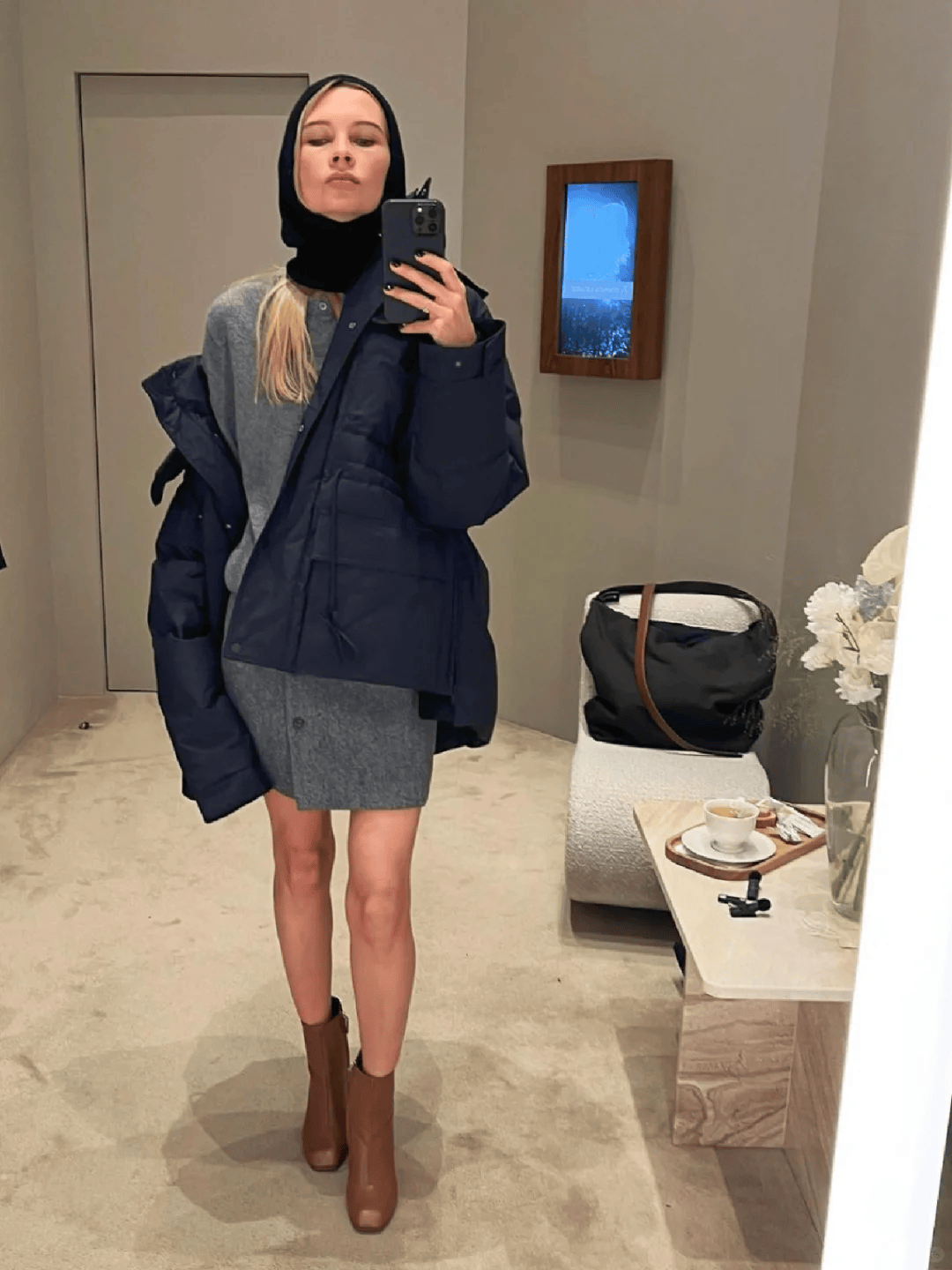 羽绒服:选长款藏蓝替代黑色,轻盈不厚重,内搭浅灰更显贵。