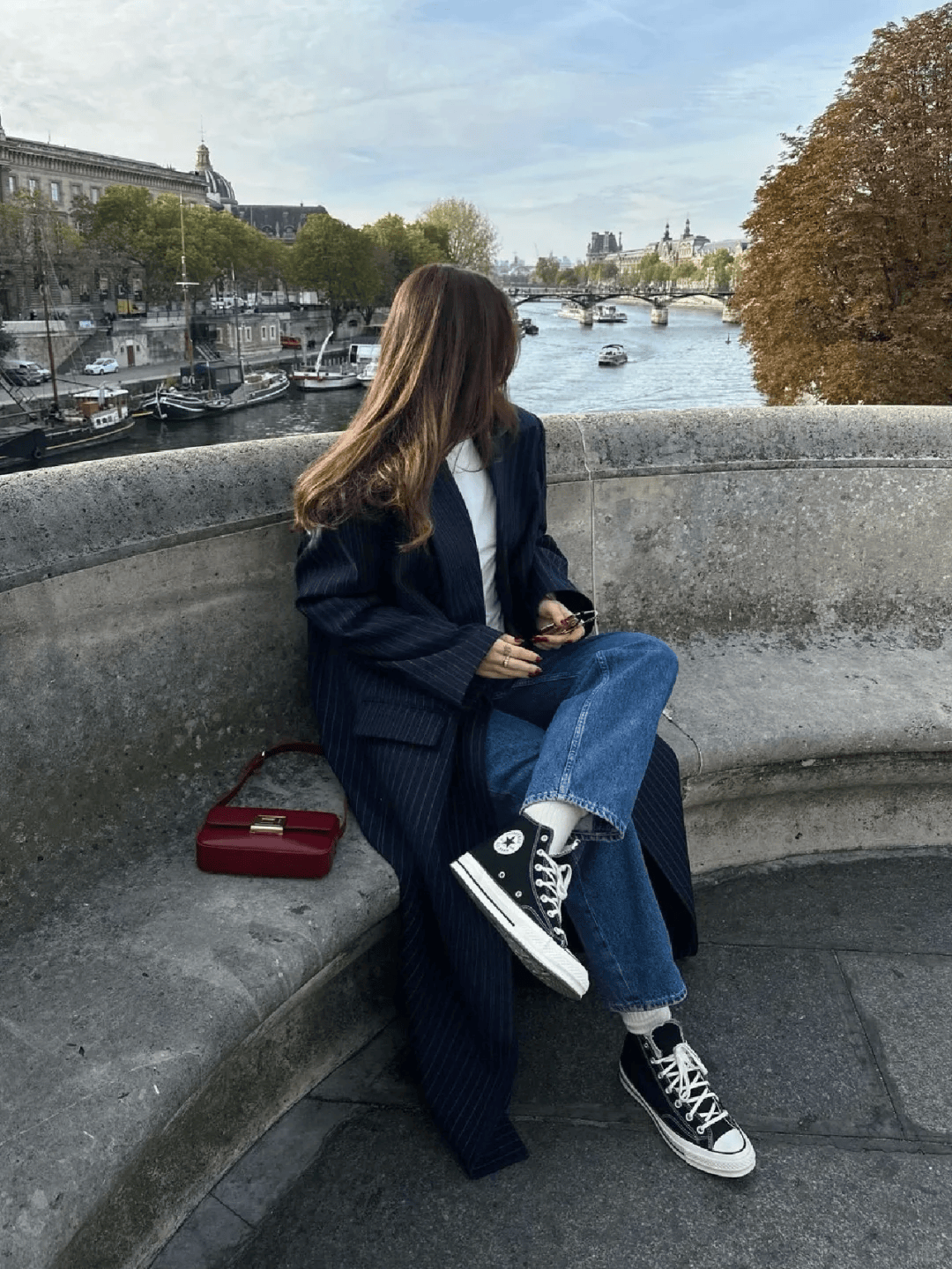 冷调清新:藏蓝+浅蓝(如牛仔单品),明度对比打造呼吸感。