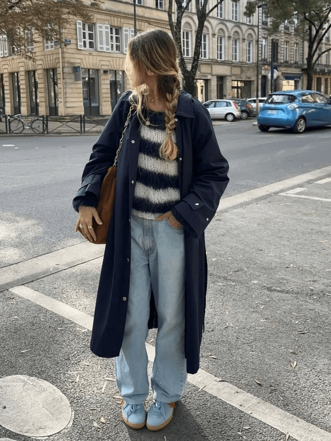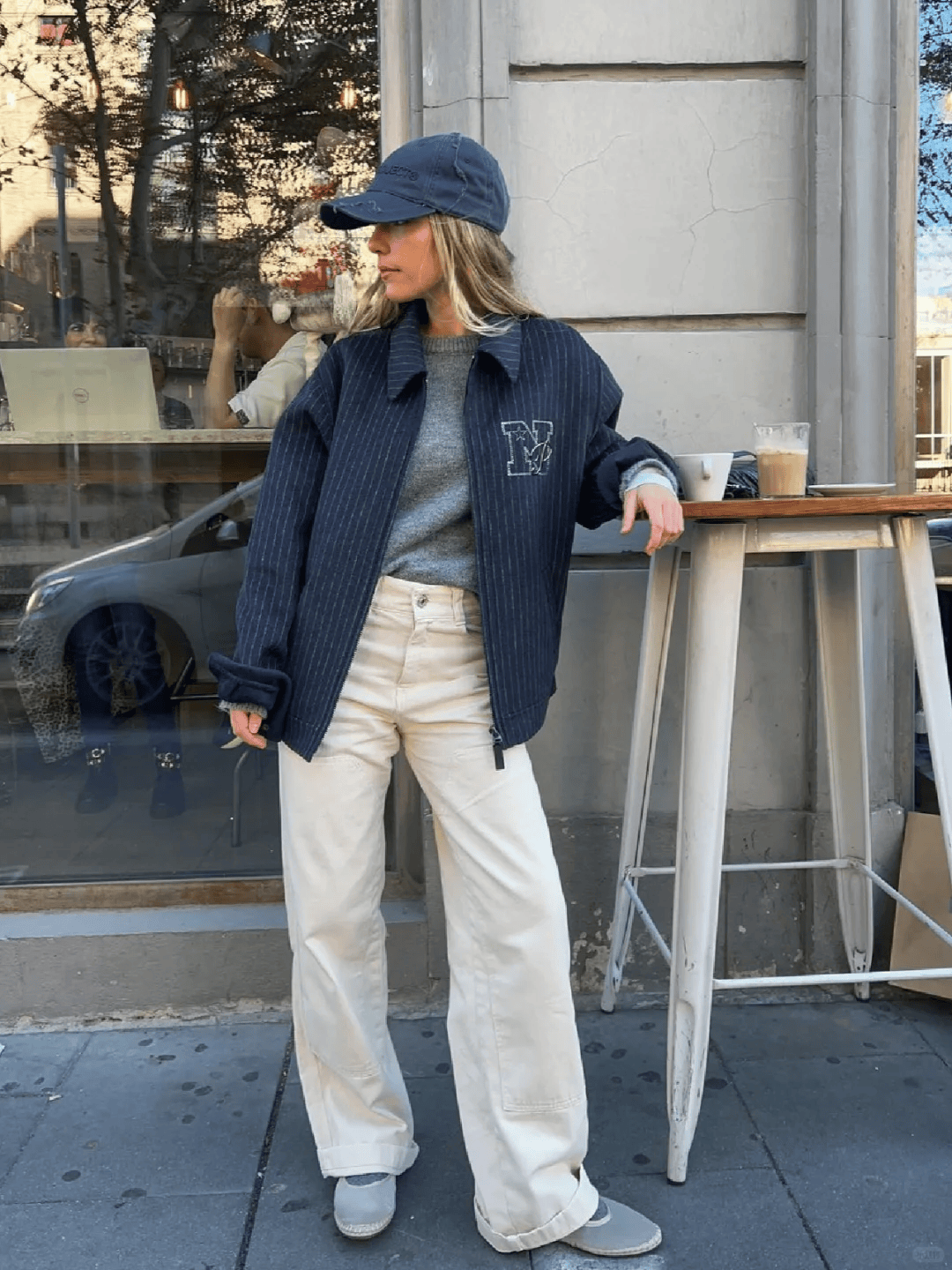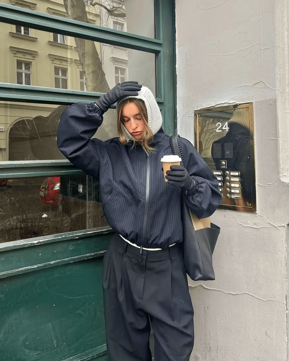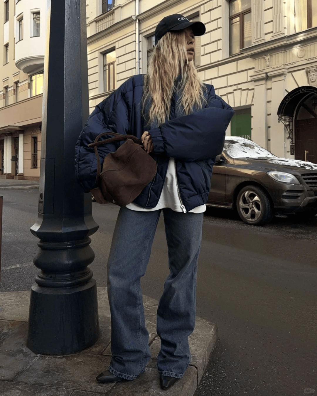 自然系碰撞:藏蓝+军绿/橄榄绿,弱化厚重感,松弛不邋遢。