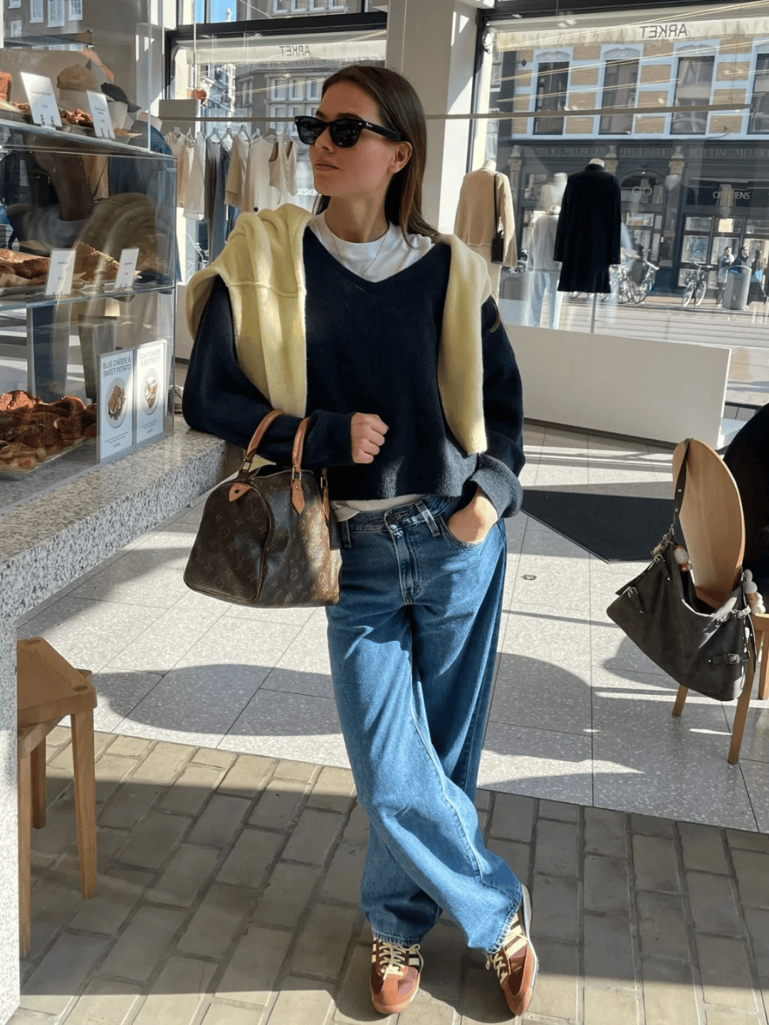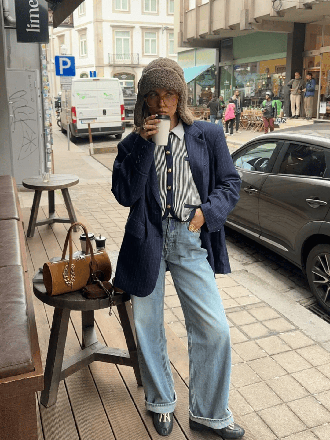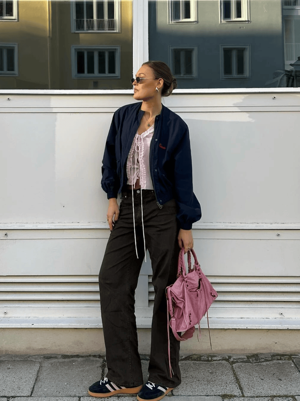 自然系碰撞:藏蓝+军绿/橄榄绿,弱化厚重感,松弛不邋遢。