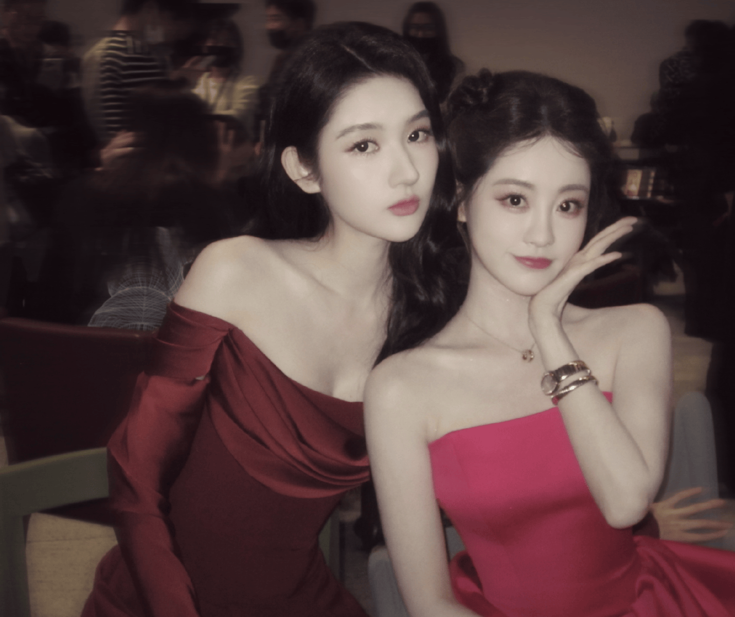 祝绪丹王玉雯玫红裙装出席时尚活动 同框合照太养眼!