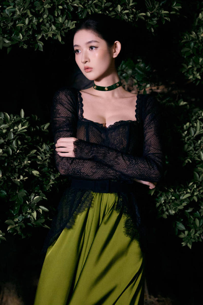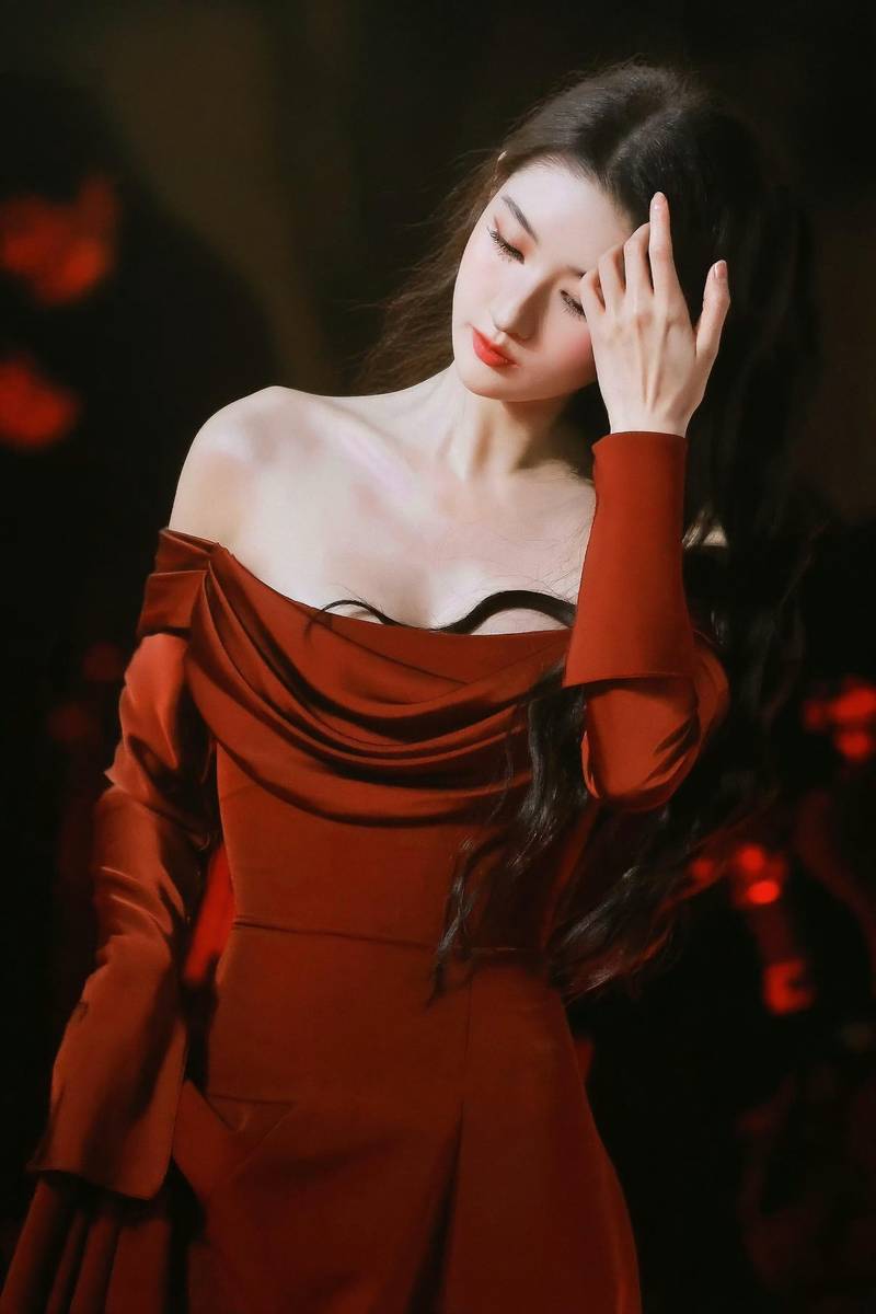 腰肢纤细却不干瘪,透着健康的曲线美。站在镜头前,下颌微扬,肩颈线像天鹅般优雅,自带复古名伶韵味。
