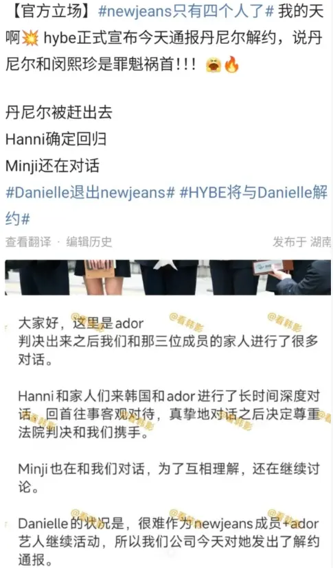 NewJeans丹尼尔“报复性解约”事件引发争议