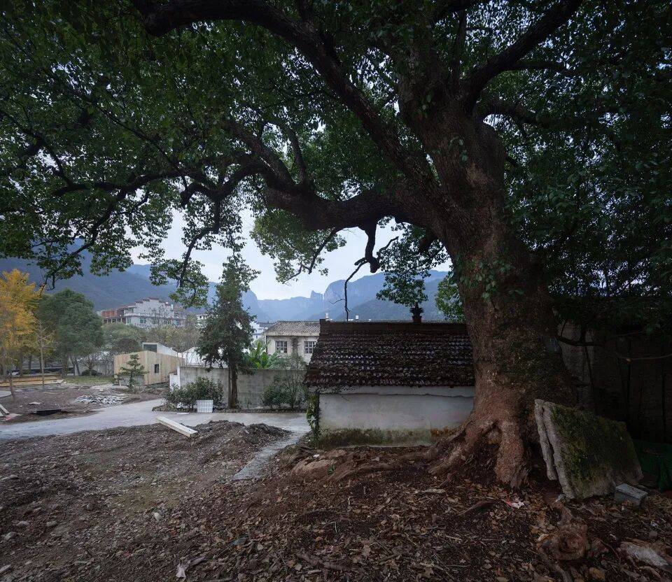 老话都说“无树不成村”,每个村子的村口总有几棵大树,也总有老人们把枝繁叶茂的大树和村子的兴旺联系起来。仙景村的风水树就在青艺宿地的北面,沿着村口小溪的支流往上大约五十米,小山脉的山脚下有着四棵古树,和土地庙一起是村子的精神象征。
