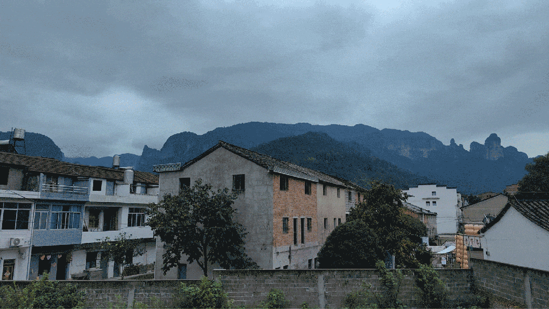 原学校南面是一个不大的操场,以一圈围墙和村路隔开,隔着村路是村居错落的水泥山墙面,山墙前种着两棵树,一棵是柿子树,另一棵是柚子树。到了橙红橘绿的时候,灰色斑驳的山墙前映着火红的柿子和圆鼓鼓的柚子,远处是云雾缭绕的饭甑岩,仿若是走进吴冠中的画中。