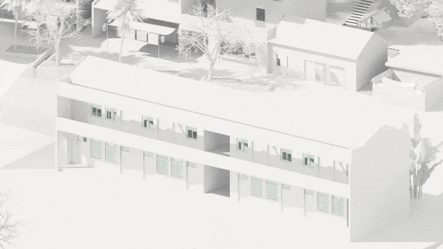 我们计划拆除破损的木结构坡屋顶,在屋顶面向饭甑岩方向设置景观露台。将原有的教室部分改为单开间的住宿单元,保留原来的窗间墙作为砖混结构支撑,将教室原来的门、窗、连同窗下墙替换为整体可打开的落地推拉门,与南面的敞廊连接,作为每个房间面向饭甑岩的写生外阳台,在原有建筑的北面用钢结构新建北廊作为入户走廊。