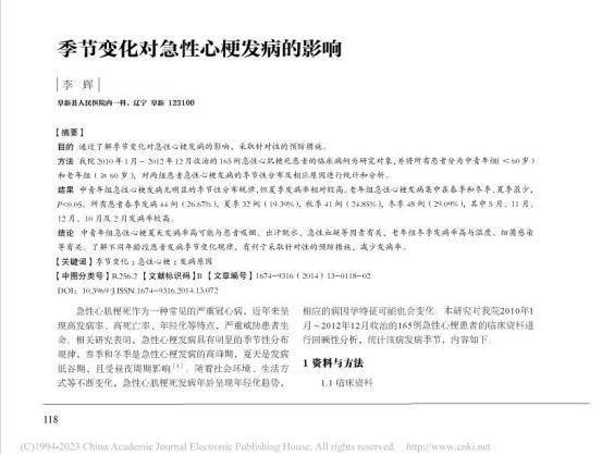 [1]李辉.季节变化对急性心梗发病的影响[J].中国卫生标准管理,2014,5(13):118-119.
