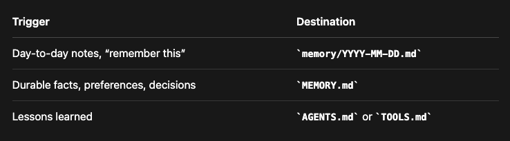 既然记忆就是纯Markdown,你也可以手动去改这些文件(它们会被自动重新索引,很智能)。