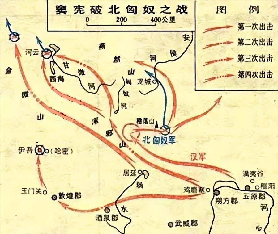 这仗打得不是擦边球,是正面刚。兵分三路出塞,主帅窦宪、副帅耿秉,合流南匈奴左谷蠡王师子等骑兵三万,出朔方鸡鹿塞会涿邪山,直指北匈奴老巢。地图往北一拉,三千余里生生打穿了漠北。