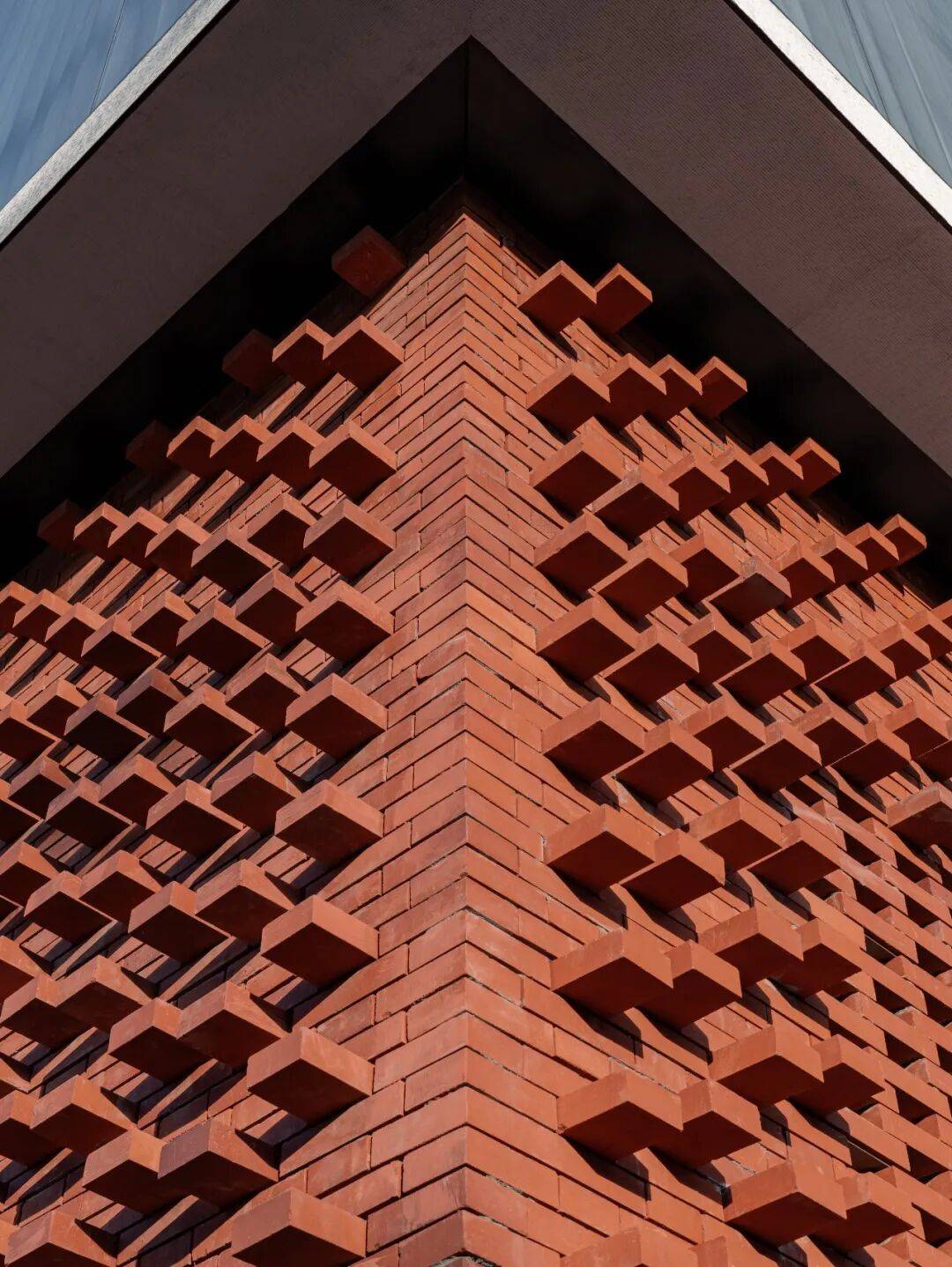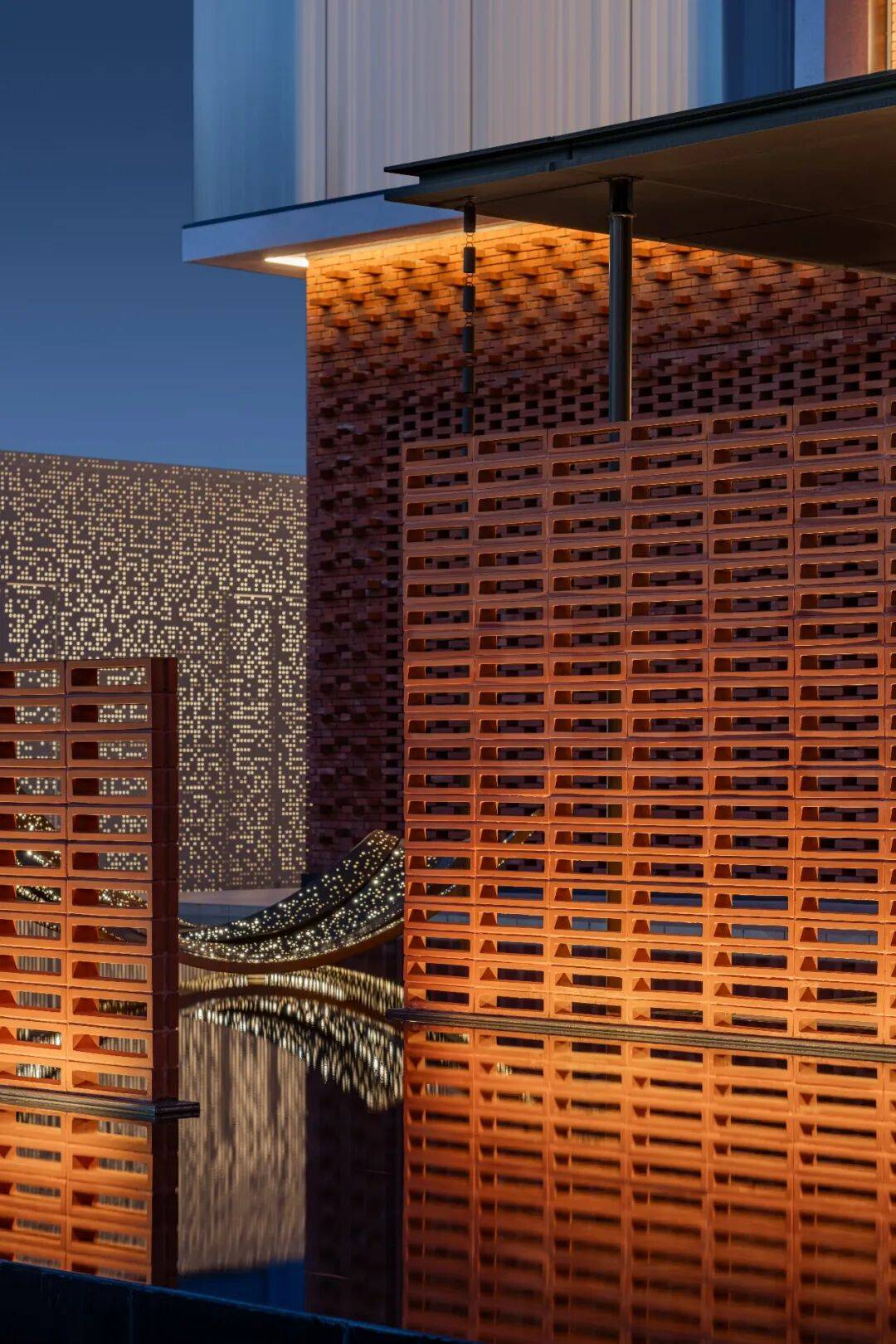 3从文化上,红砖是传统建筑的常用材质,承载着本土记忆,而通过现代砌筑工艺的赋能,更是可以成为连接传统与现代的媒介。我们通过砖的模数变化、不同砌筑工艺,让红砖在白天形成丰富的光斑,夜晚成为光影的载体,用设计的力量让这种再普通不过的传统材料,在智能制造的空间中焕发新生,也是一种be something different的宣示。
