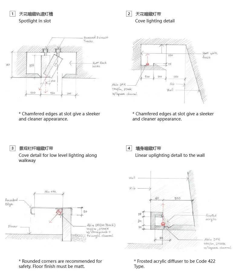 ▲木饰面墙体灯光照明节点 © Peggy Tan, Glint Lighting Design