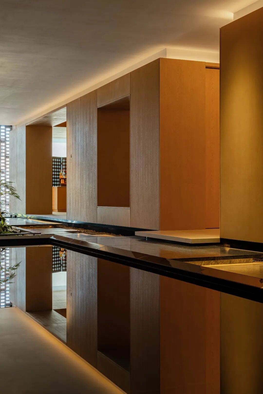 ▲木饰面墙体灯光照明节点© Peggy Tan, Glint Lighting Design