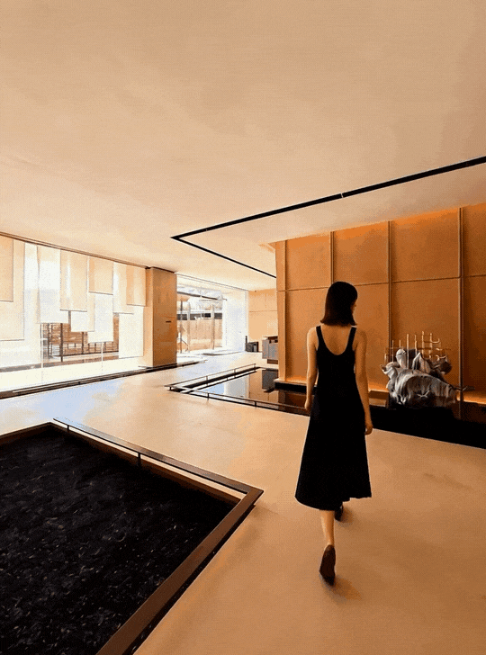 为了强化沉浸感,我们在水院周边植入香氛系统,雪松与檀香的气味随水雾弥漫,配合潺潺水声,形成“视觉- 听觉- 嗅觉” 的通感体验—— 这种五感的沉浸,正是艾罗为酒店客户打造“五星即吾心” 的理念缩影。