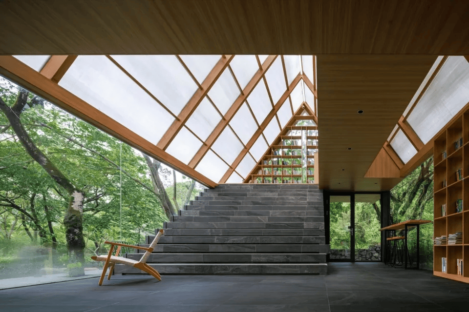 无界设计:三角屋顶与半透明界面,让建筑如蝶翼般伏入自然;