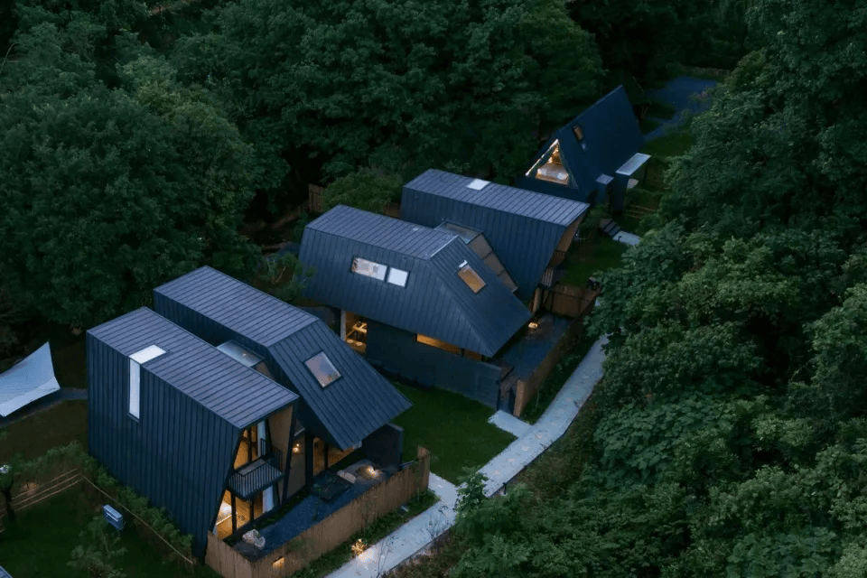 废弃更新:将废弃建筑群转化为隐入山林的度假场所,以村落式布局顺应地形;