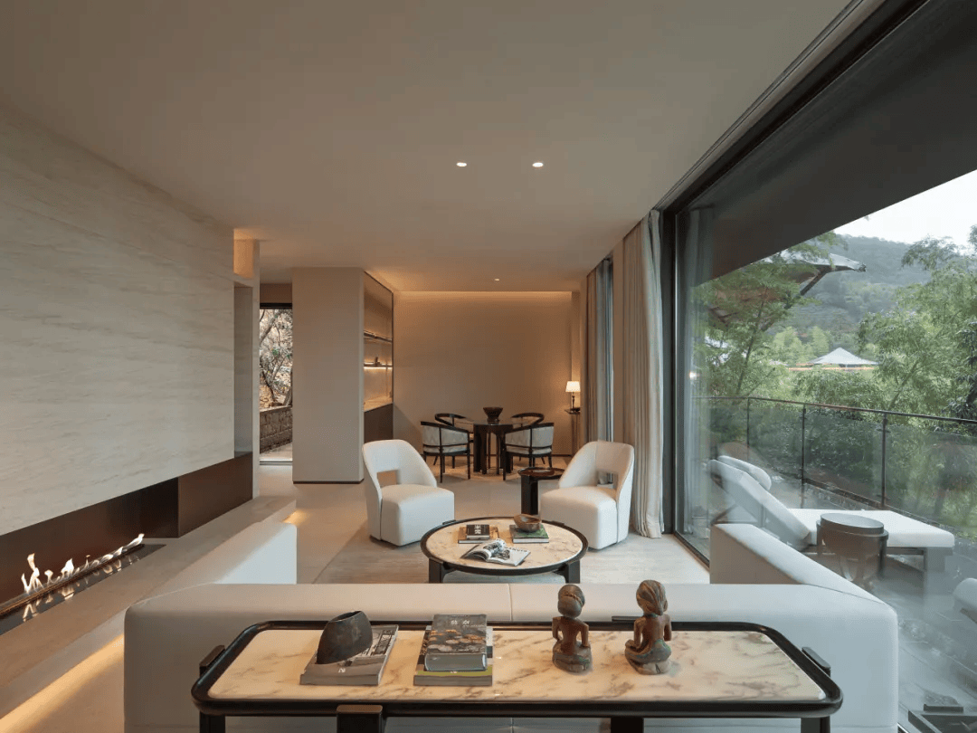 室内外渗透:露台泡池、全景窗与自然声景交织,打造与山林同频的居住体验。