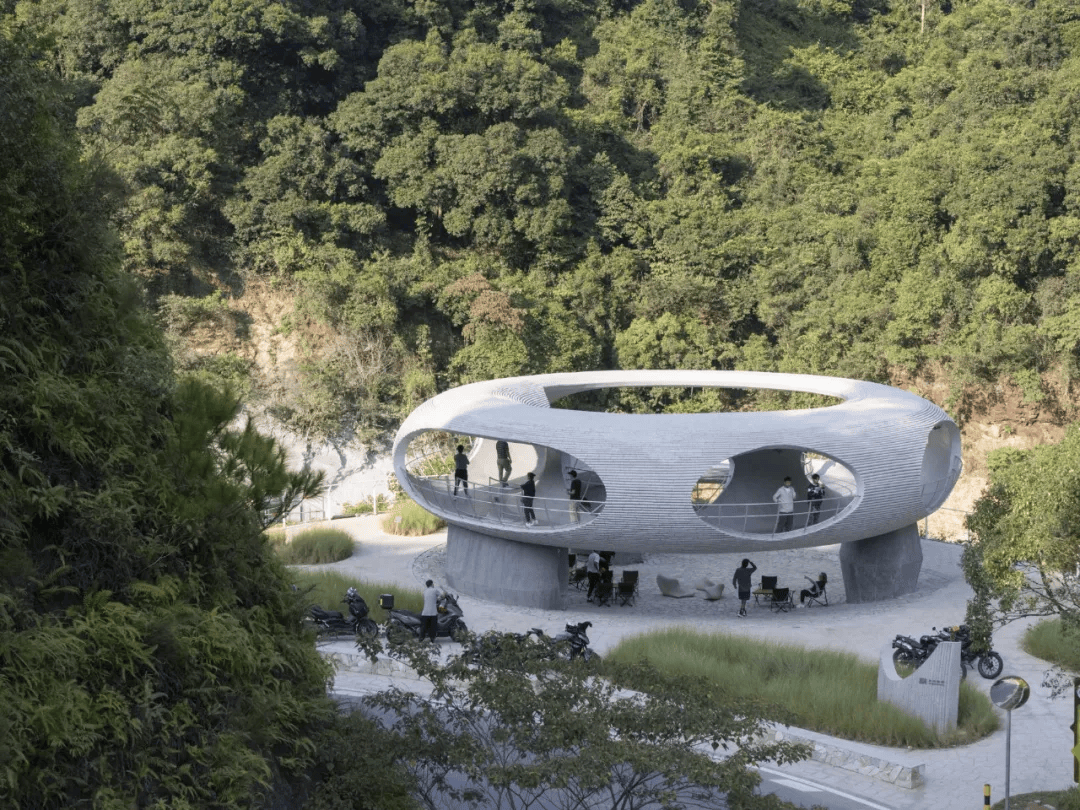 在地呼应:竹纹模板浇筑的混凝土表皮,成为骑行途中的标志性节点。
