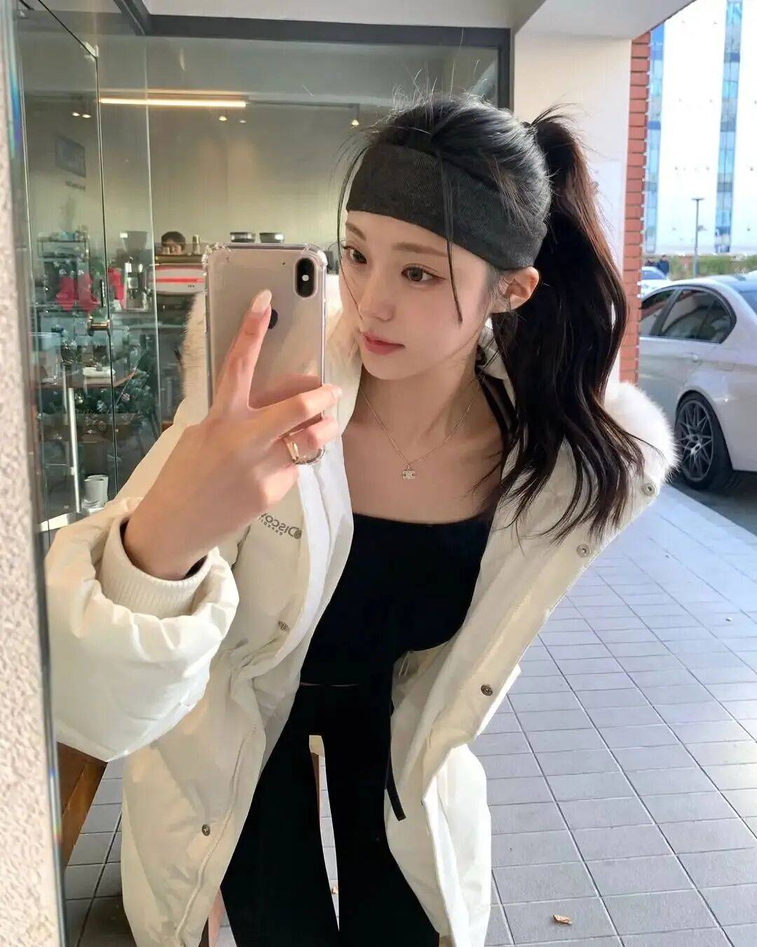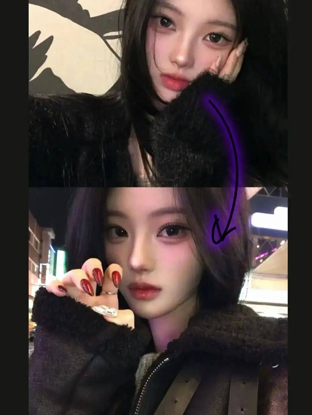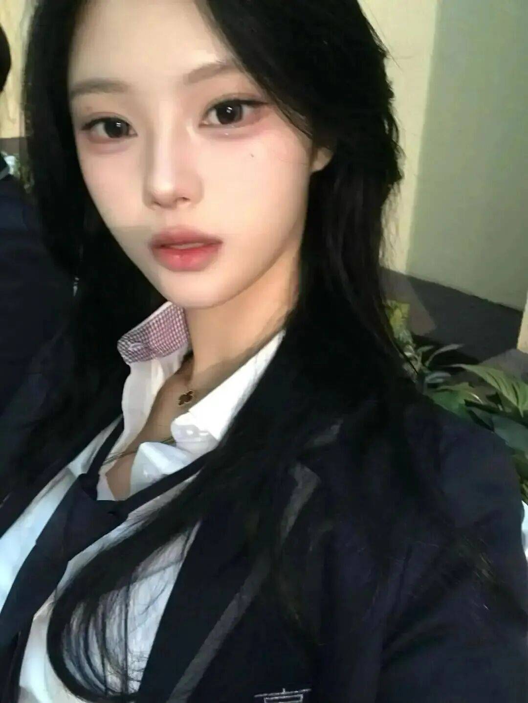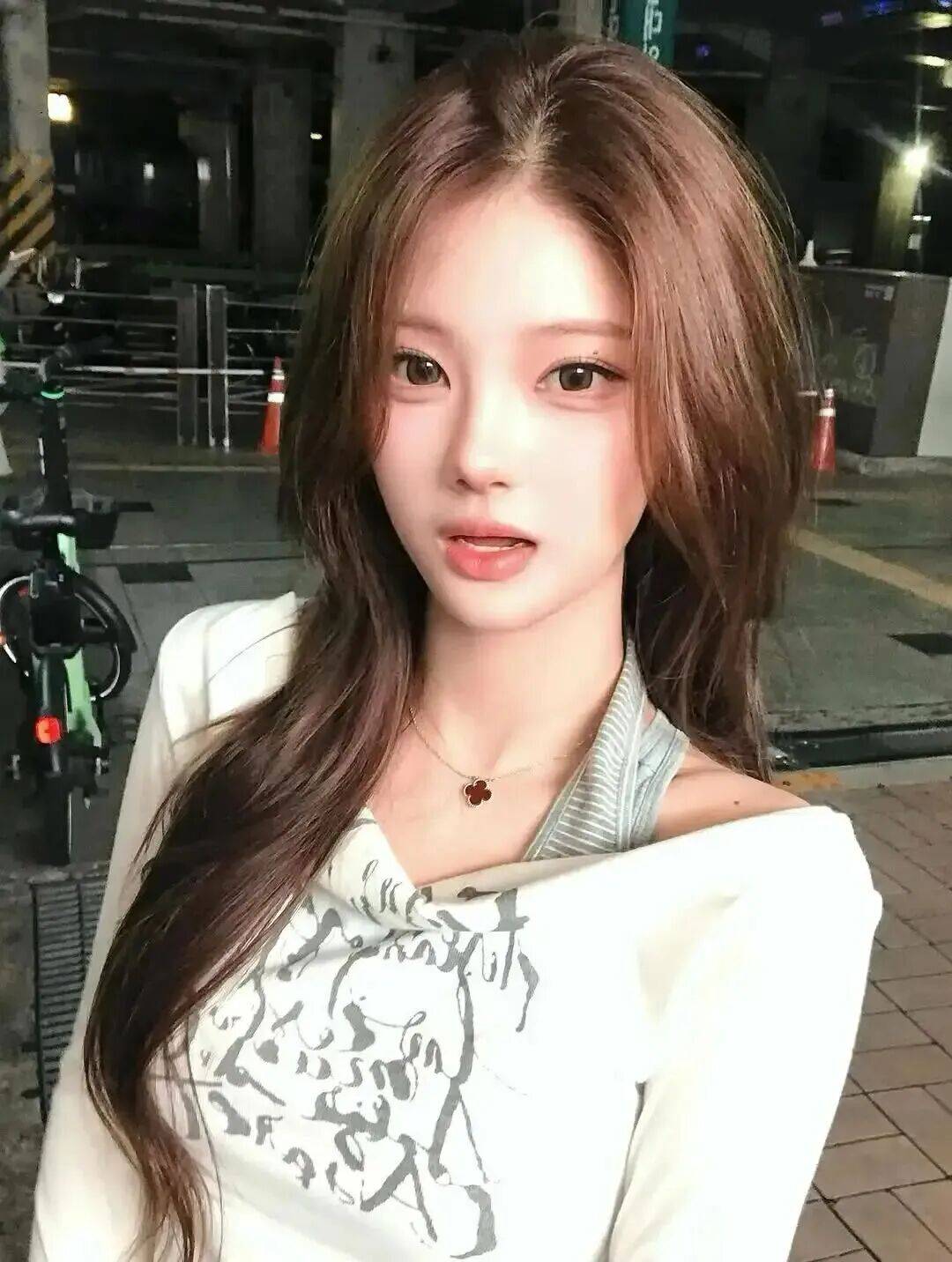 u.oni :韩国INS时尚博主,以“性感+简约”风格为主,擅长用基础款演绎高级感,如老钱风羊毛假两件毛衣、中性色西装外套搭配骑行裤等,唇形饱满(M唇),日常唇色偏裸粉或浅橘,气质温柔。