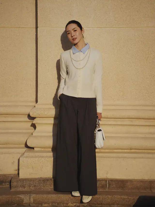白色针织开衫:打造清爽造型