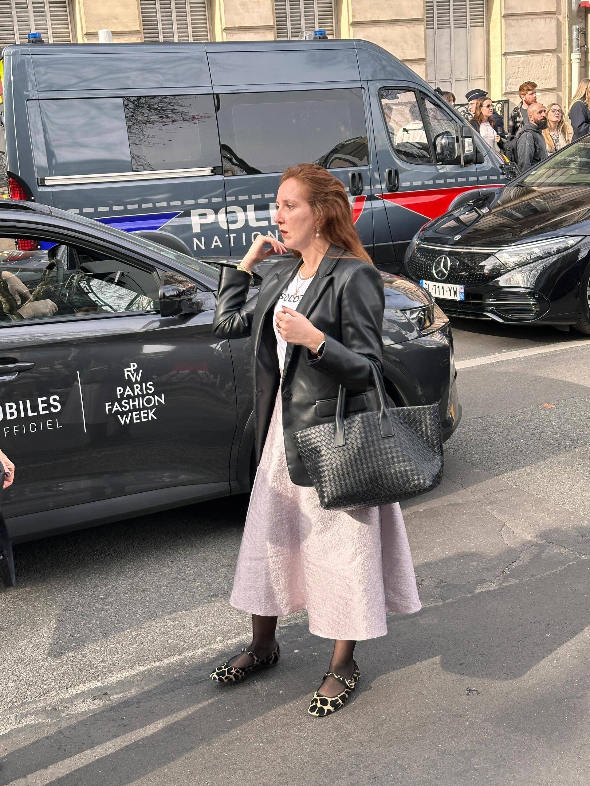 配饰:拒绝“堆砌”,选精致小物:如黑色腋下包、金属蛇形项链、针织贝雷帽,提升造型质感,又不会抢了裙子和外套的风头。