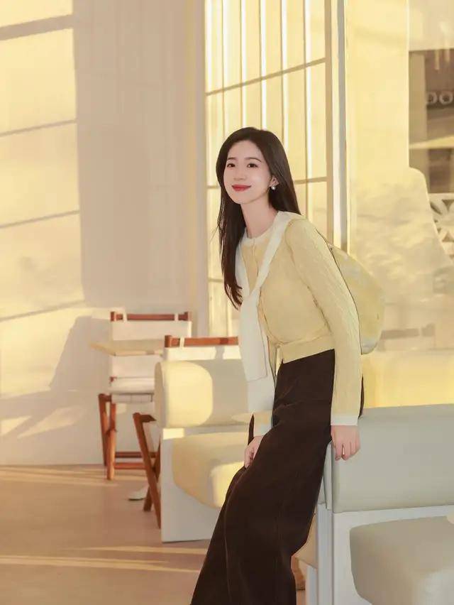 00 后的美少女想让自己的穿搭更个性,同时又偏休闲风的情况下,可以直接选择卡其色的夹克小外套,内搭一件蓝色的针织毛衣,叠穿白色 T 恤,加上一条直筒短裙,穿的时候把内搭的衣服都塞进裙子里面,再勒上腰带,就能形成高腰线,这种穿法确实更显少女感。第四章节,针织开衫搭配技巧