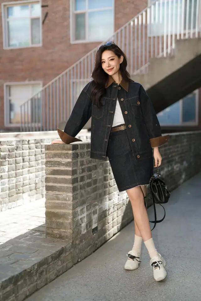 二、裙子×短外套:利落减龄的“刚柔并济”法