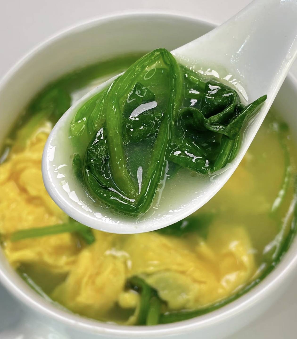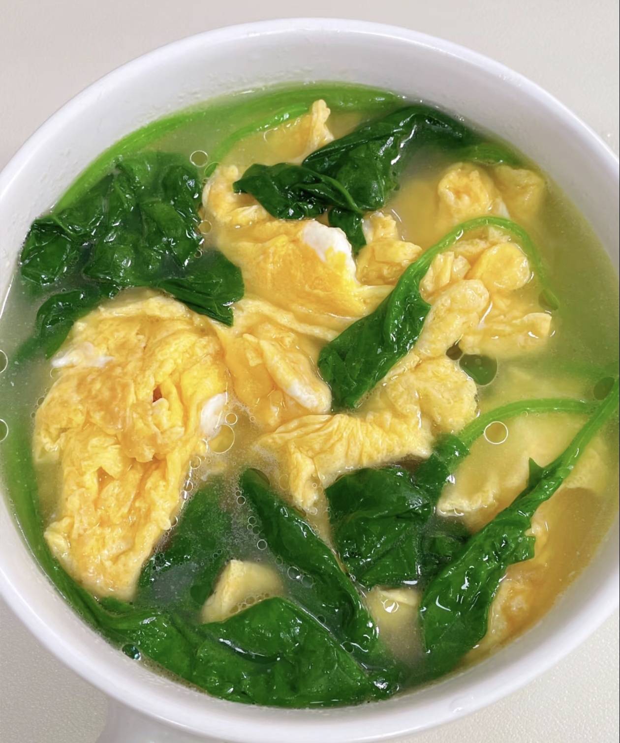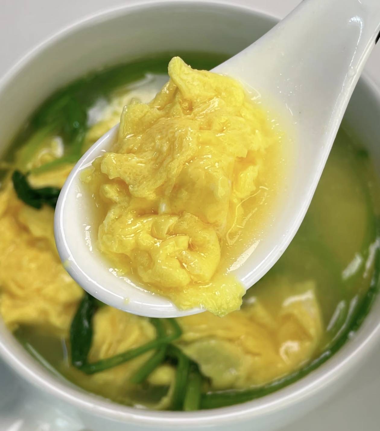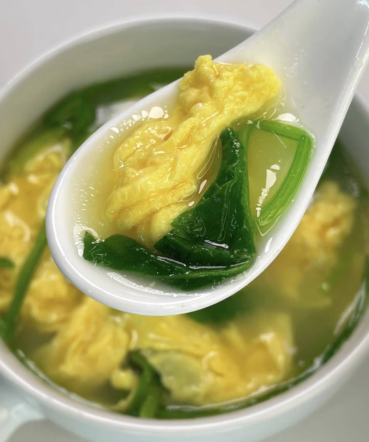 汤色清亮,蛋花悬浮,像一幅画。