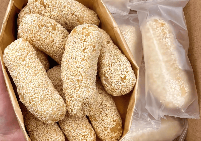 糖温把控:140℃蔗糖与麦芽糖混合糖浆,快速裹糖,撒芝麻或桂花。