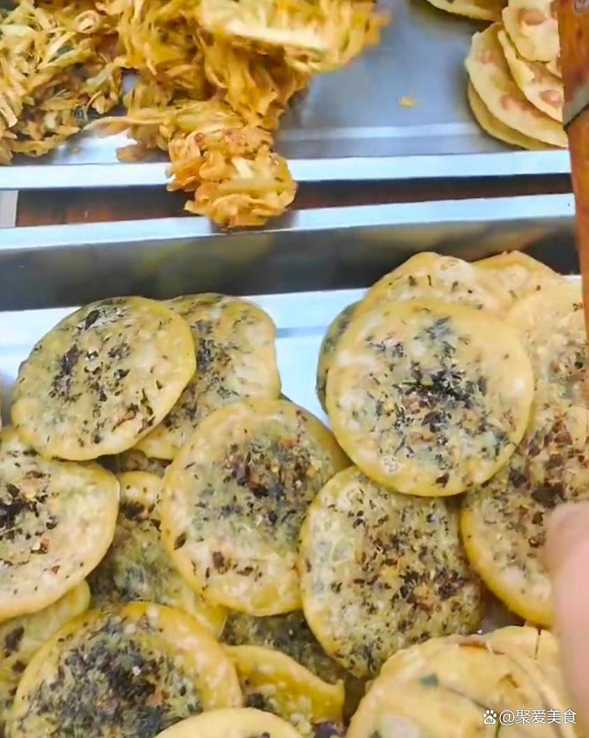 铜勺饼:南雄珠玑巷的“炸物王者”。糯米粉糊裹花生、芝麻、酸菜,铜勺炸至金黄酥脆,“嘎吱”作响,咸香可口,是追剧、下酒的“灵魂伴侣”。