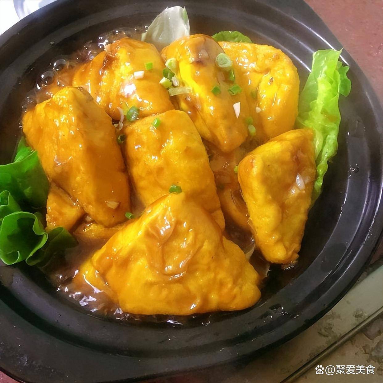 樟市黄豆腐以野生黄栀子汁染色,成就寓意吉祥的“黄金豆腐”,入选韶关市非遗名录 。当地客家人将鲜嫩豆腐块裹上黄栀子汁液,经炭火烘烤后,或煎或酿,最经典的煎酿做法是填入肉馅,中小火煎至两面金黄,勾薄芡出锅,豆腐软滑吸满肉香,栀子的微苦与肉馅的鲜甜相得益彰,色泽金黄诱人,口感层次丰富 。