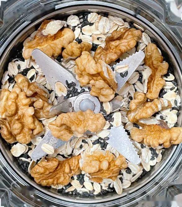 核桃+黑芝麻+燕麦打粉,早餐拌酸奶。