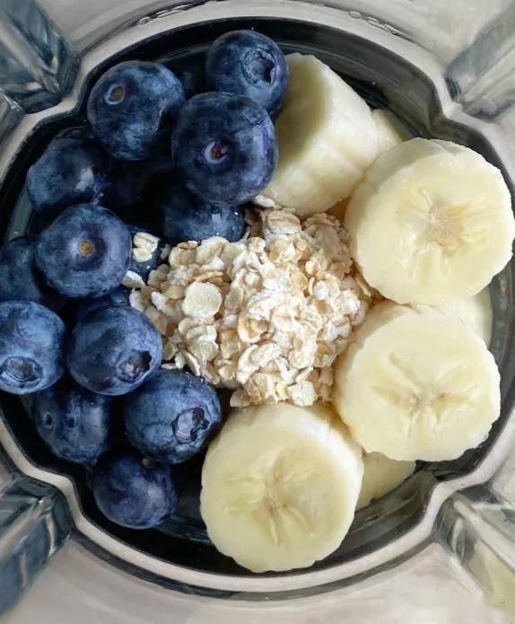 蓝莓+香蕉+希腊酸奶打成思慕雪,冷冻成冰棍。