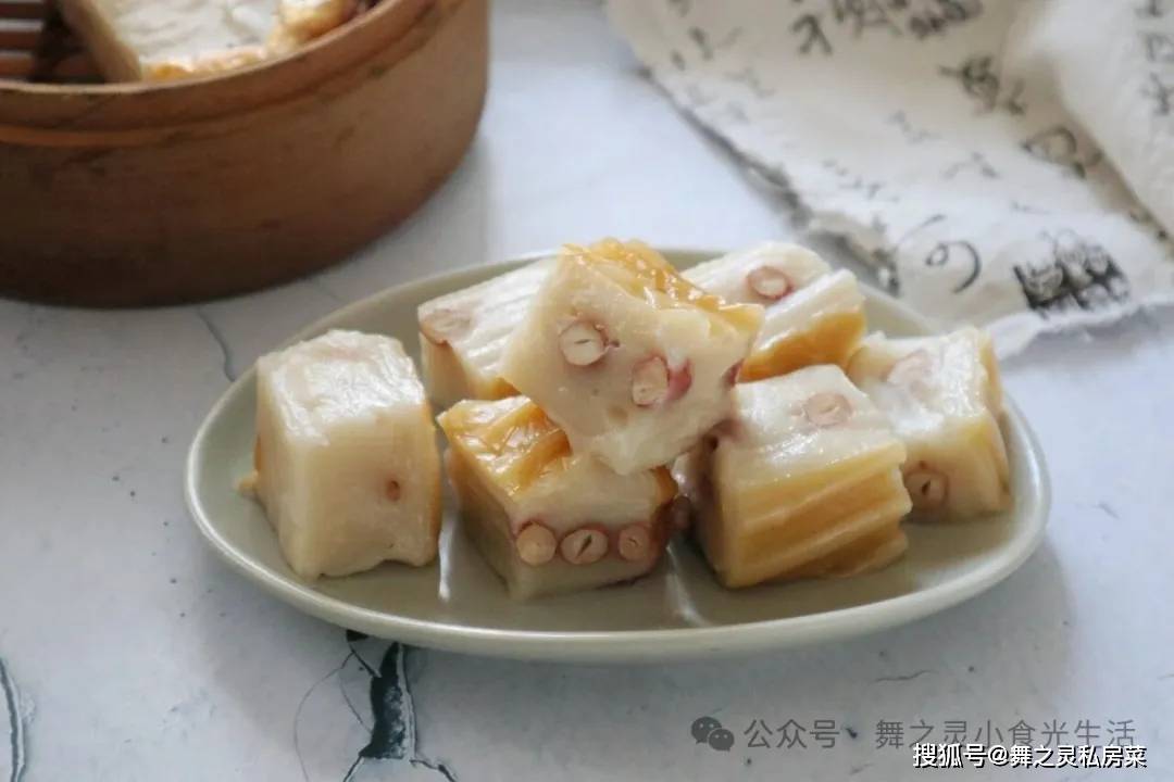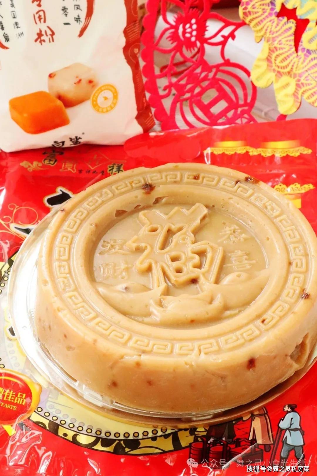 这款年糕我用了造型高温托,成品出来表面就有个福字,真是和外面卖的一模一样,而且更加的好吃。