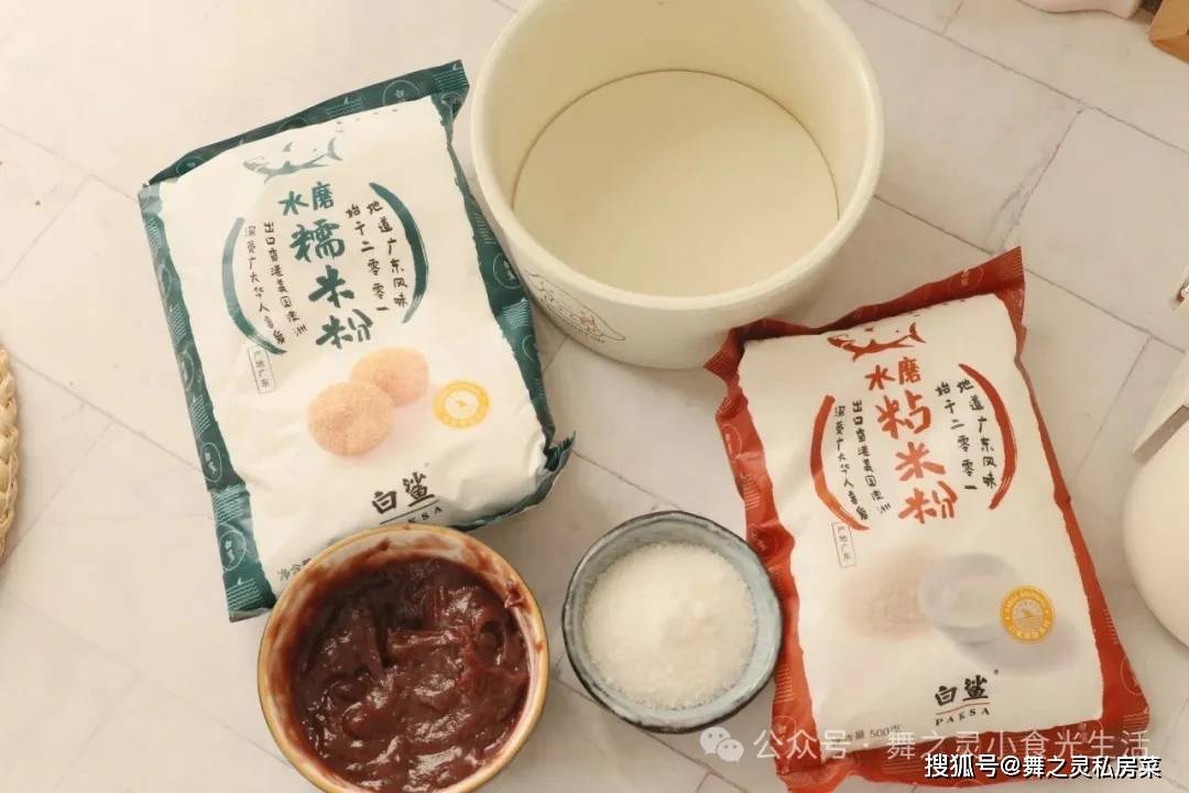 材料:大米粉210克,糯米粉80克,水145克,糖50克 豆沙馅180克