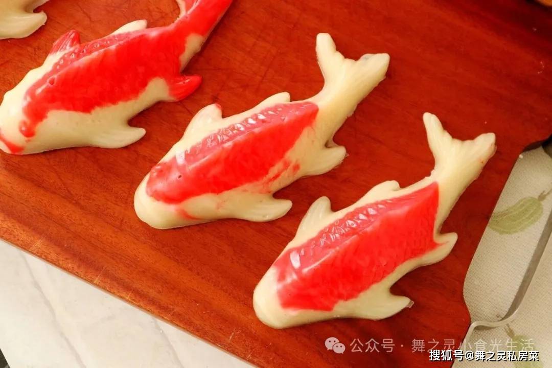 哈哈,看看这个造型,有没有被惊艳到了,按着这个样子,你说外面卖可是老贵了,偷偷告诉你,其实在家做很简单,成本还非常的低呢,一斤年糕粉可以做4条的锦鲤,你说要不要收?