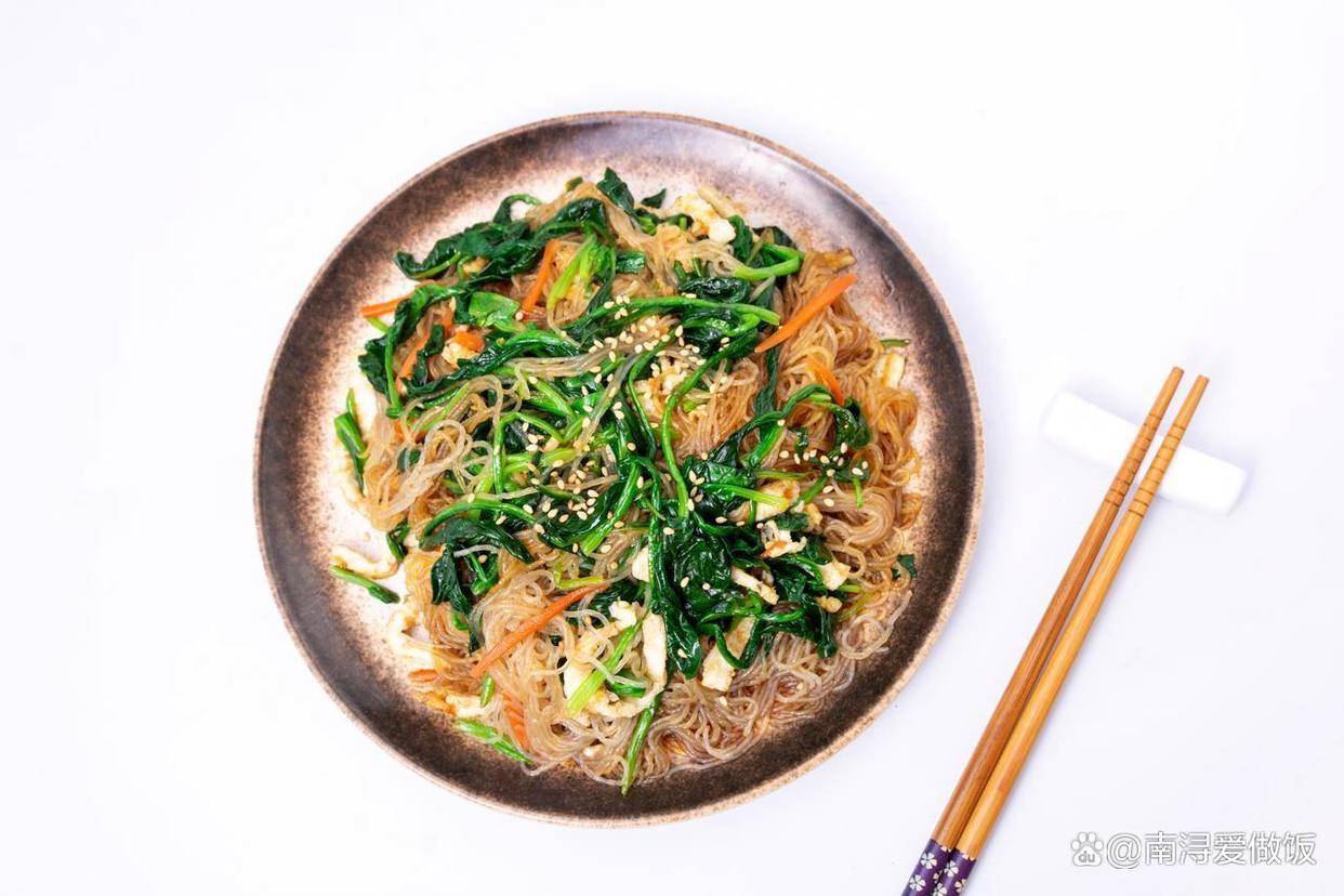 所需食材:菠菜300g、粉丝1小把、胡萝卜半根、熟芝麻1勺、蒜末2瓣、生抽2勺、香醋1勺、盐1g、糖2g、香油1勺、辣椒油半勺(可选)
