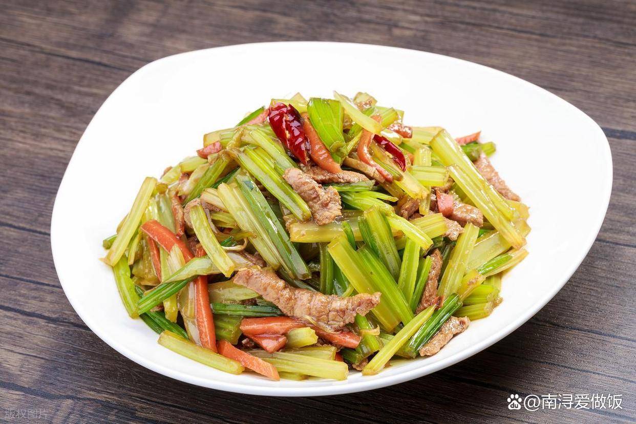 1. 香芹抽去老筋,切5cm段,叶与梗分开;里脊逆纹切0.3cm粗丝,长与芹段相仿,口感更匹配。