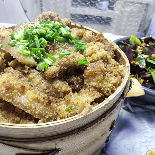 做法很简单: 五花肉切成厚片,加葱姜蒜、料酒、老抽、蚝油、少许盐抓匀腌制20分钟。准备点粗米粉,最好在锅里干炒一下出香味,倒出来晾凉。把腌好的肉片在米粉里滚一圈,均匀裹上。找个大碗或深盘,底部铺上切好的土豆块或红薯块,把肉皮朝下码好。水开后上锅蒸,大火蒸1小时左右,倒扣在盘子里,撒点葱花,香迷糊了。