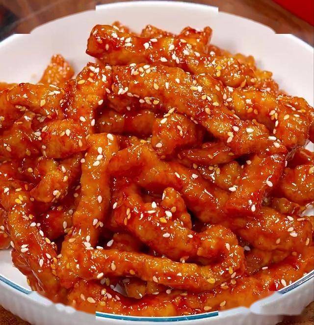 5、锅中留少许油,倒入糖醋汁煮至浓稠,放入炸好的里脊快速翻炒均匀,撒上白芝麻即可。