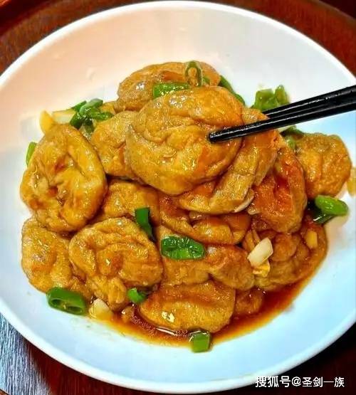 2.热锅之后少放些油,接着下入豆泡,接下来轻轻翻炒,直至豆泡的表面变为微黄,此时加入盐以及蚝油来进行调味。