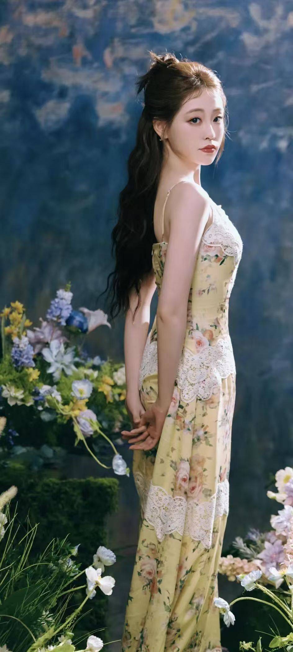 平时总觉得祝绪丹是那种清冷挂的美女,没想到穿起碎花裙来这么有反差萌。她就像一块刚出炉的黄油曲奇,外表看起来温温柔柔,咬一口却带着让人惊喜的甜。花丛里的她一点都不刻意,随手一个动作都像是在花丛里自然生长出来的,连发丝上沾着的小花瓣都像是精心设计过的装饰。