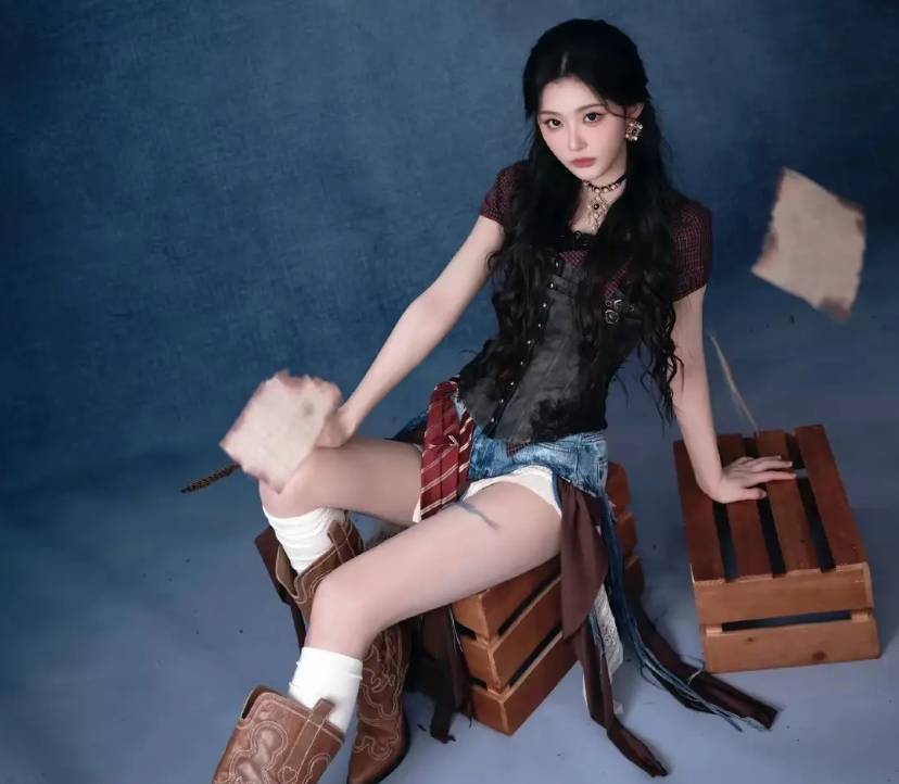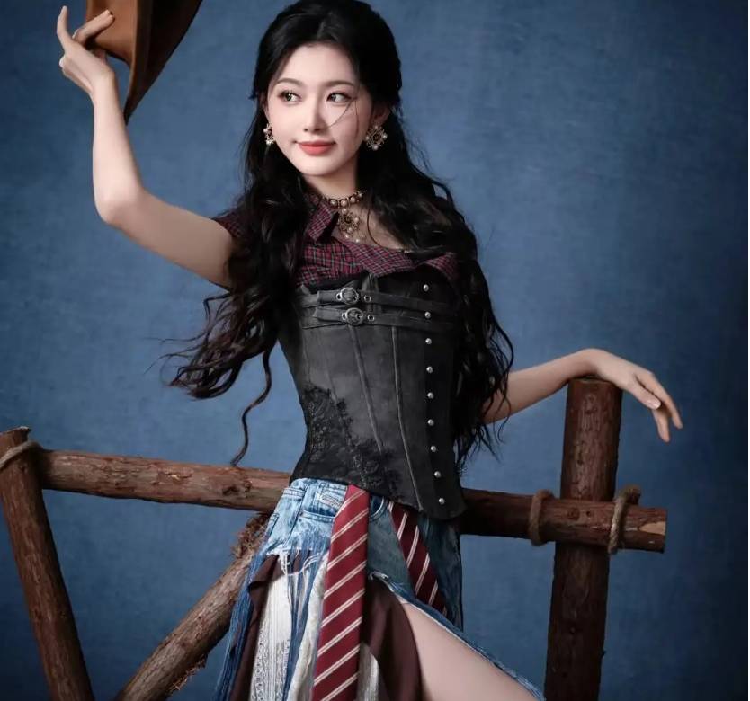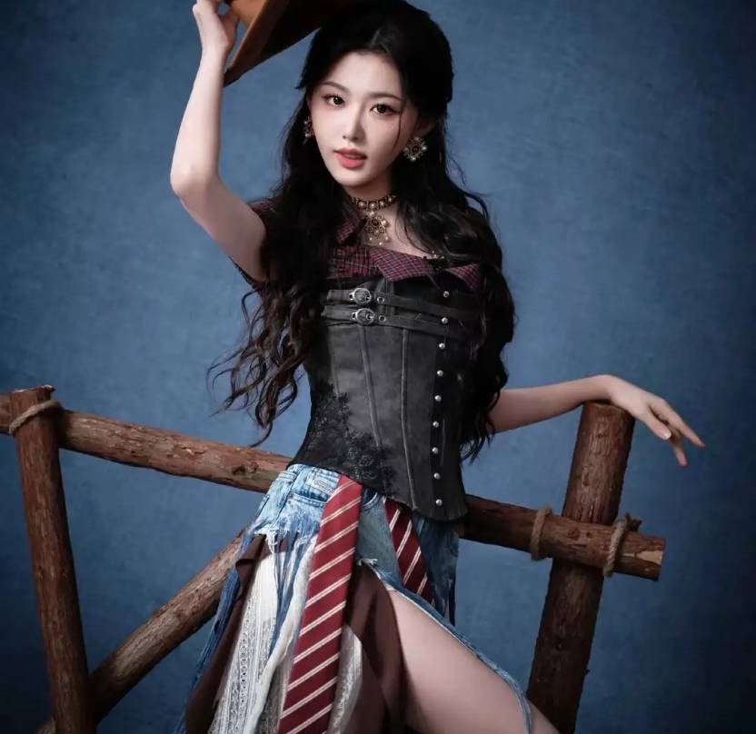 不过这套造型的魅力核心,其实是孔雪儿身上的自信。你看她站在镜头前,眼神里的光芒比聚光灯还亮,走路带风的样子仿佛整个舞台都是她的后花园。束身衣和牛仔短裤只是加分项,真正让大家疯狂的,是她那种 “老娘就是这么美” 的底气。自信才是最好的时尚单品啊朋友们!穿什么不重要,重要的是你敢不敢穿,敢不敢把自己的光芒亮出来。