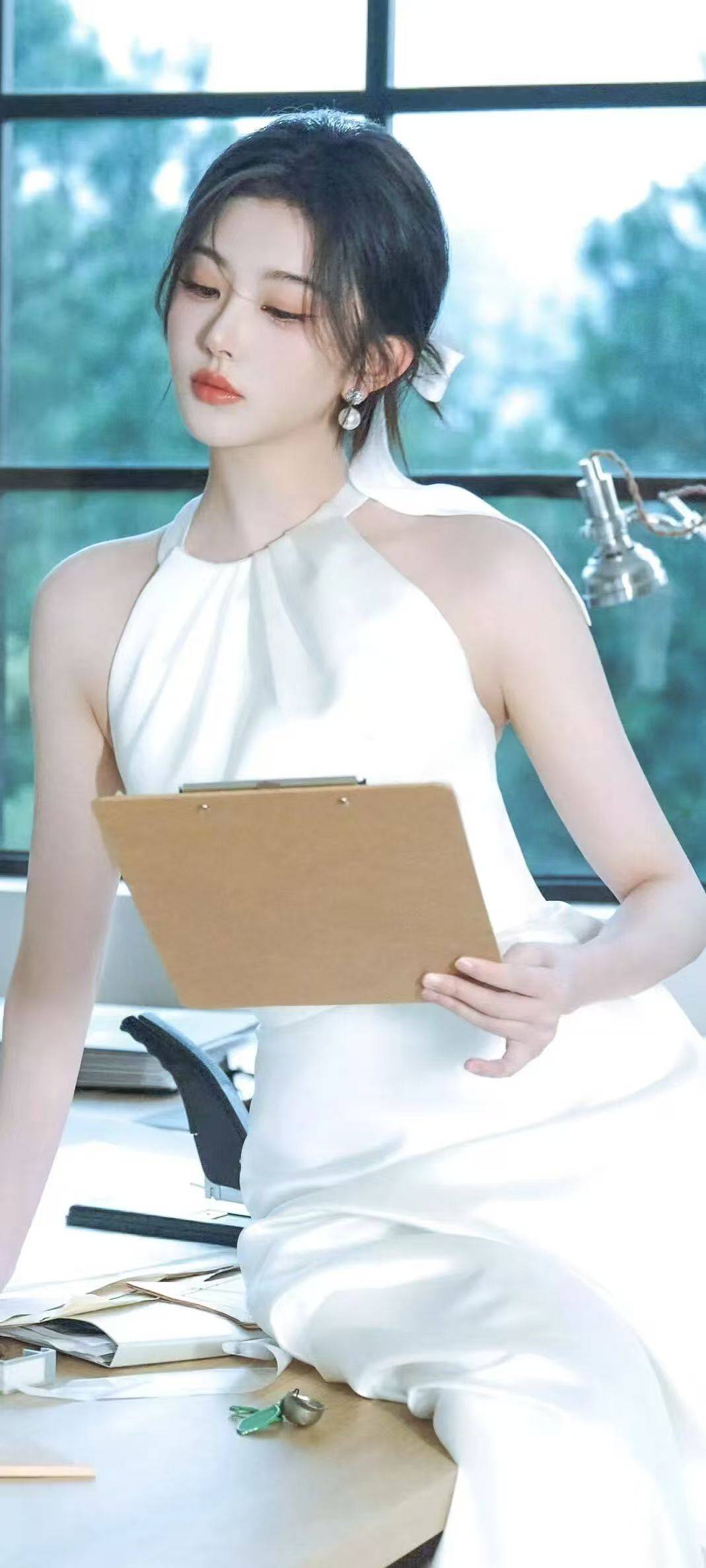 孔雪儿这组白裙写真也太绝了吧!她穿着一身纯白色的挂脖长裙,站在窗边的时候,阳光透过玻璃洒在她身上,整个人都在发光,活脱脱就是从画里走出来的珍珠少女。裙子是那种简约又高级的设计,挂脖的款式露出精致的锁骨和纤细的肩膀,后背还有个小小的挖空设计,又纯又欲的感觉拿捏得刚刚好。她的发型也很有小心思,头发松松地挽在脑后,留了几缕碎发在脸颊两边,显得特别温柔。耳朵后面还别着一条白色的丝带,随着动作轻轻飘动,像个灵动的小仙女。最让人眼前一亮的是她戴的珍珠耳环,圆圆的珍珠搭配银色的镶钻底座,和她身上的白色裙子简直是绝配,温柔又贵气。妆容方面孔雪儿这次走的是清透自然挂,底妆薄得像没化一样,重点突出了她那双水汪汪的大眼睛。眼尾微微上挑的眼线显得特别有神,睫毛又长又翘,像两把小扇子。唇色选了温柔的橘粉色,和她白皙的皮肤形成了完美的呼应,看起来元气满满。她坐在蓝色沙发上的时候,一只手轻轻搭在腿上,无名指上的珍珠戒指特别抢镜。阳光照在她身上,裙子的光泽感特别好,看起来质感满满。最绝的是她的眼神,既有少女的纯真,又带着一丝妩媚,让人看了心跳加速。当她拿起文件夹的时候,又秒变知性小姐姐。白色长裙配上认真的表情,简直就是言情小说里的女主角。窗外的绿色植物和她身上的白色裙子形成了鲜明的对比,整个画面清新又治愈。不得不说孔雪儿真的很会拍,每个动作都自然又好看,完全没有刻意摆拍的痕迹。看完这组照片终于明白为什么大家都说孔雪儿是“人间珍珠”了,她身上那种温柔又灵动的气质,真的像一颗被精心打磨过的珍珠,散发着柔和又迷人的光芒。这种简约又高级的风格太适合她了,希望以后能看到更多这样的造型!
